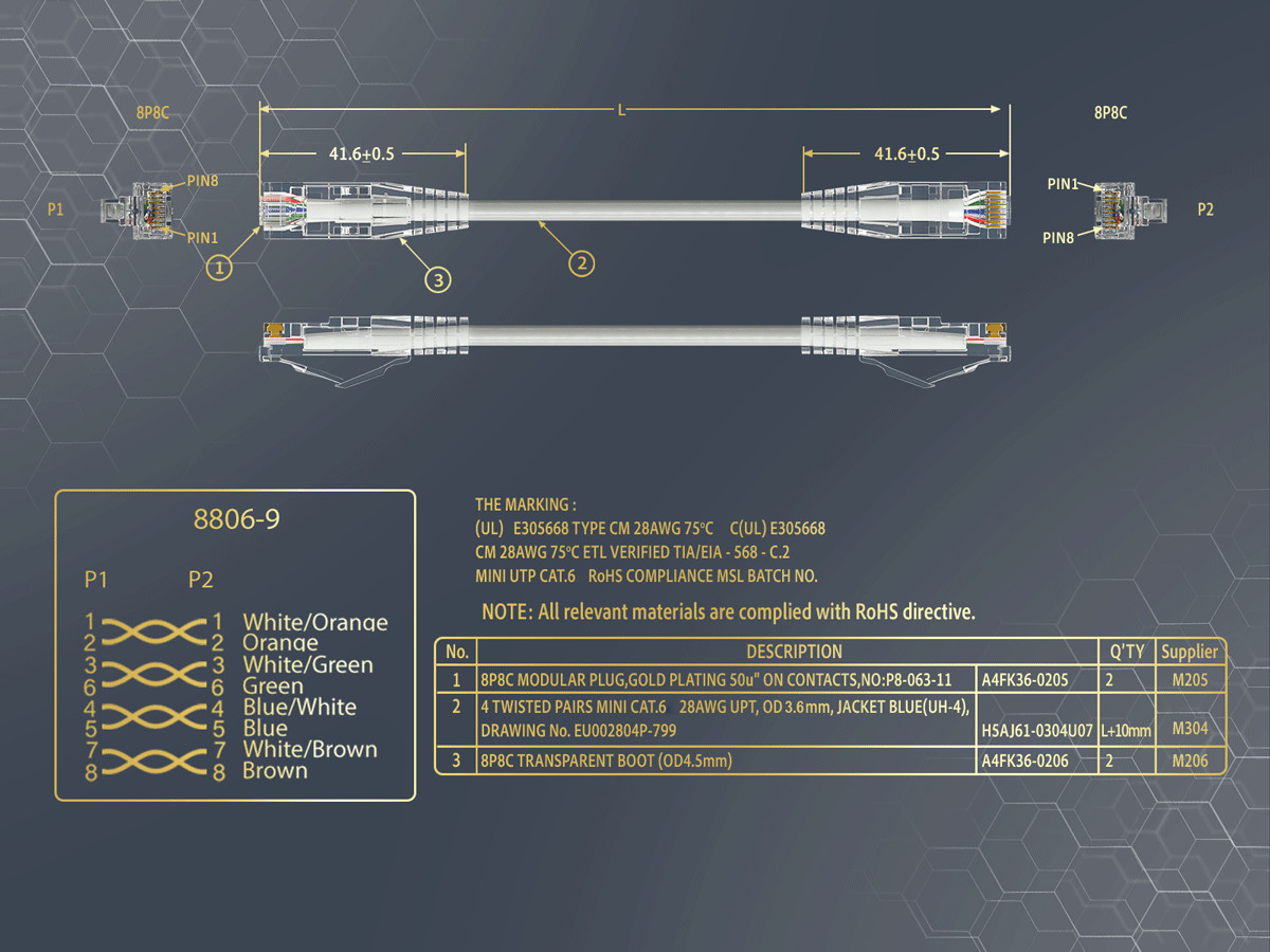 15ft Slim Cat6 28AWG UTP Ethernet Network Patch Cable Snagless, Gray
