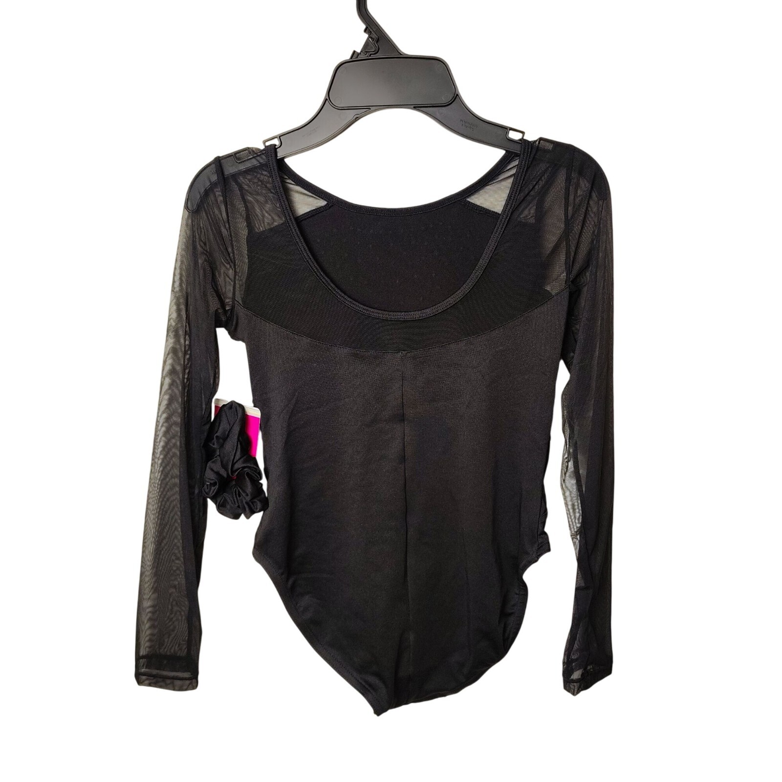 Justice Girls L 12/14 Long Sleeve Black Mesh Dance Rhinestone Leotard