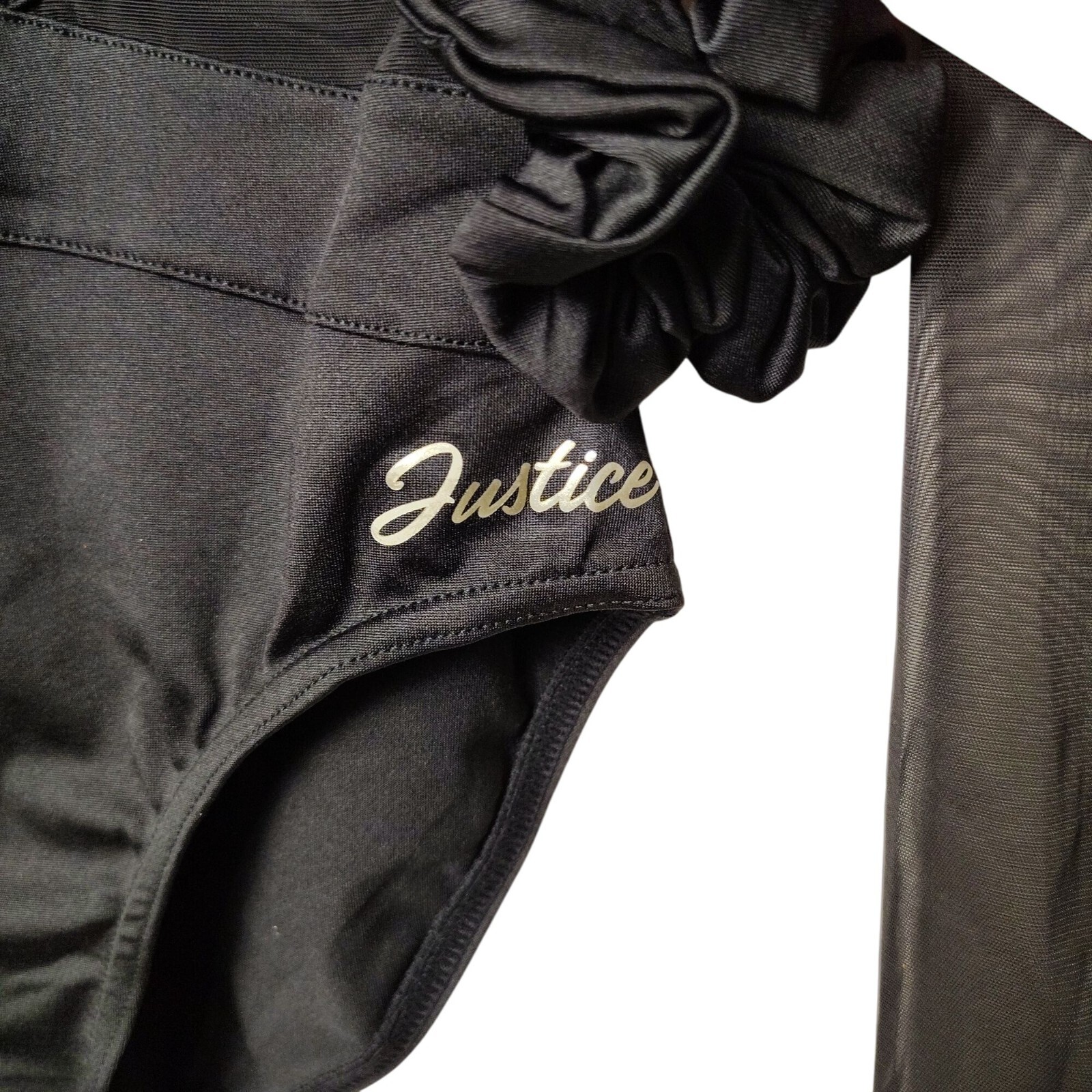 как выглядит Justice Girls L 12/14 Long Sleeve Black Mesh Dance Rhinestone Leotard фото