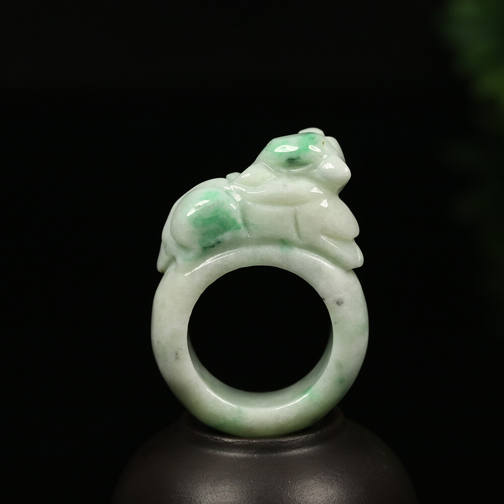 Size 11.5 Certified Grade A Green 100 Natural Jadeite Jade Ring Pixiu 02537