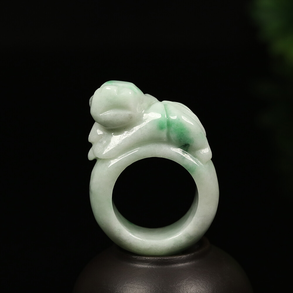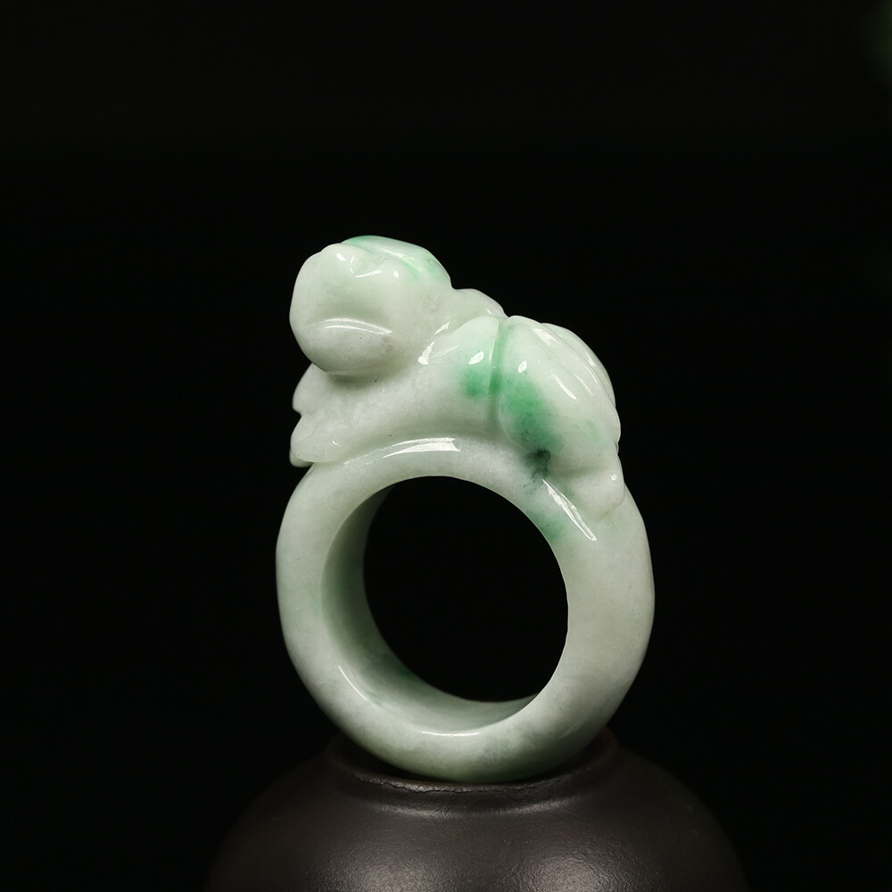 как выглядит Size 11.5 Certified Grade A Green 100 Natural Jadeite Jade Ring Pixiu 02537 фото