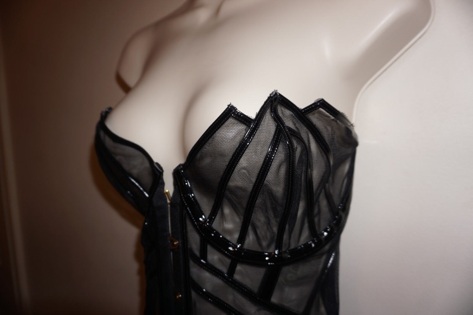 Agent Provocateur Jet Corset size AP 5 XL Black Tulle with Vinyl NWT