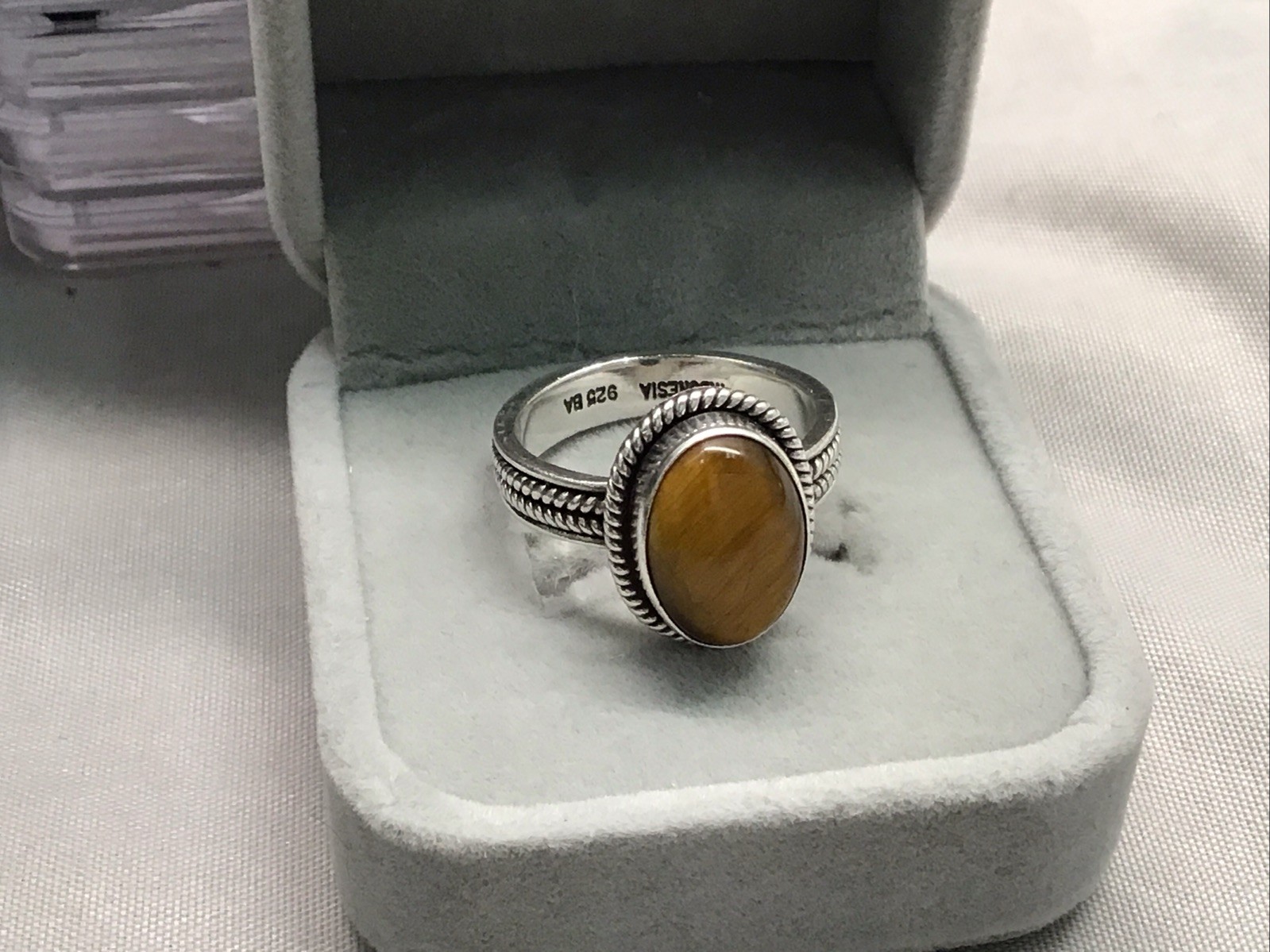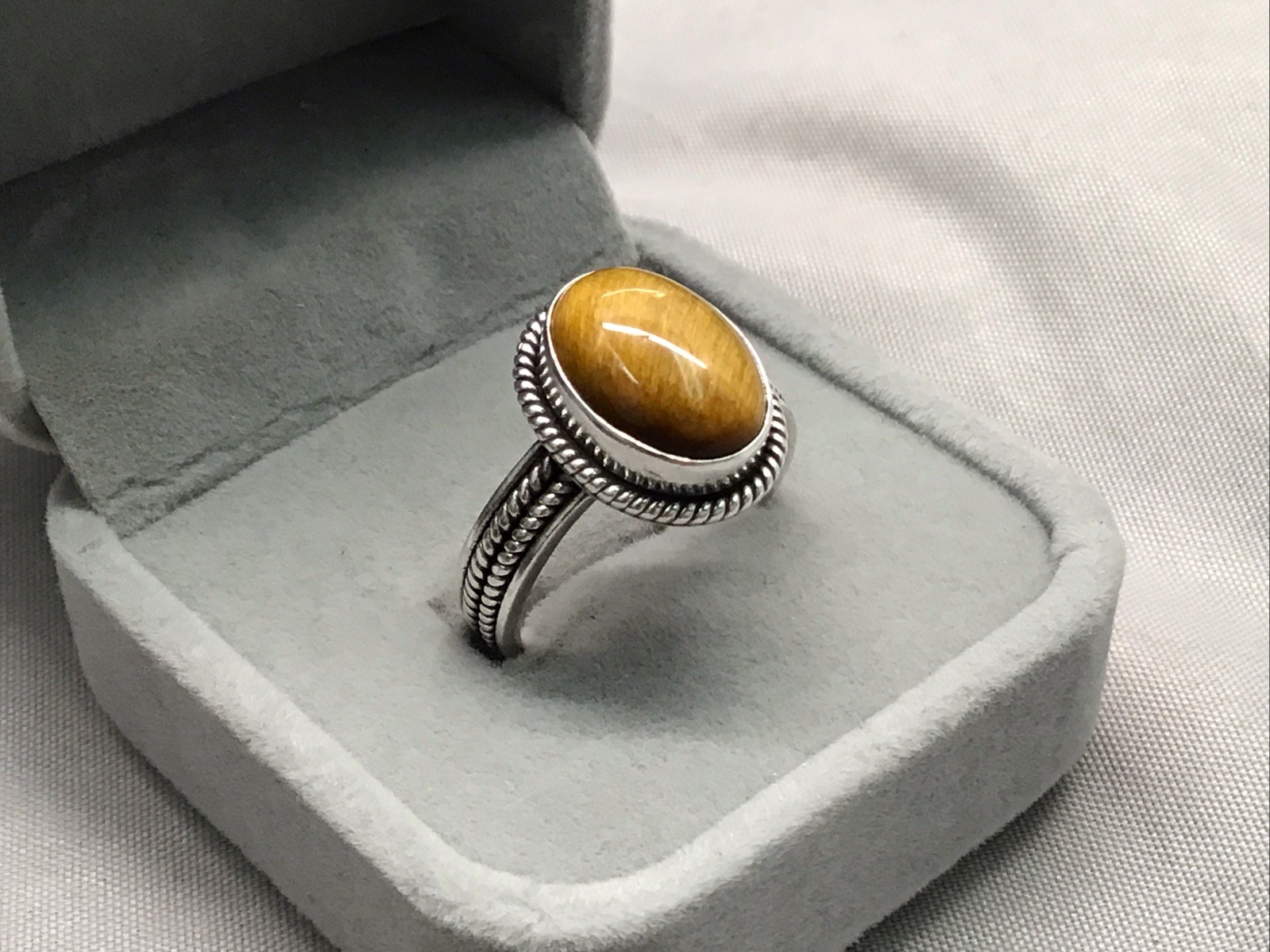 как выглядит TERRIFIC TIGERS EYE CABACHON STERLING SILVER RING SIZE 9 фото