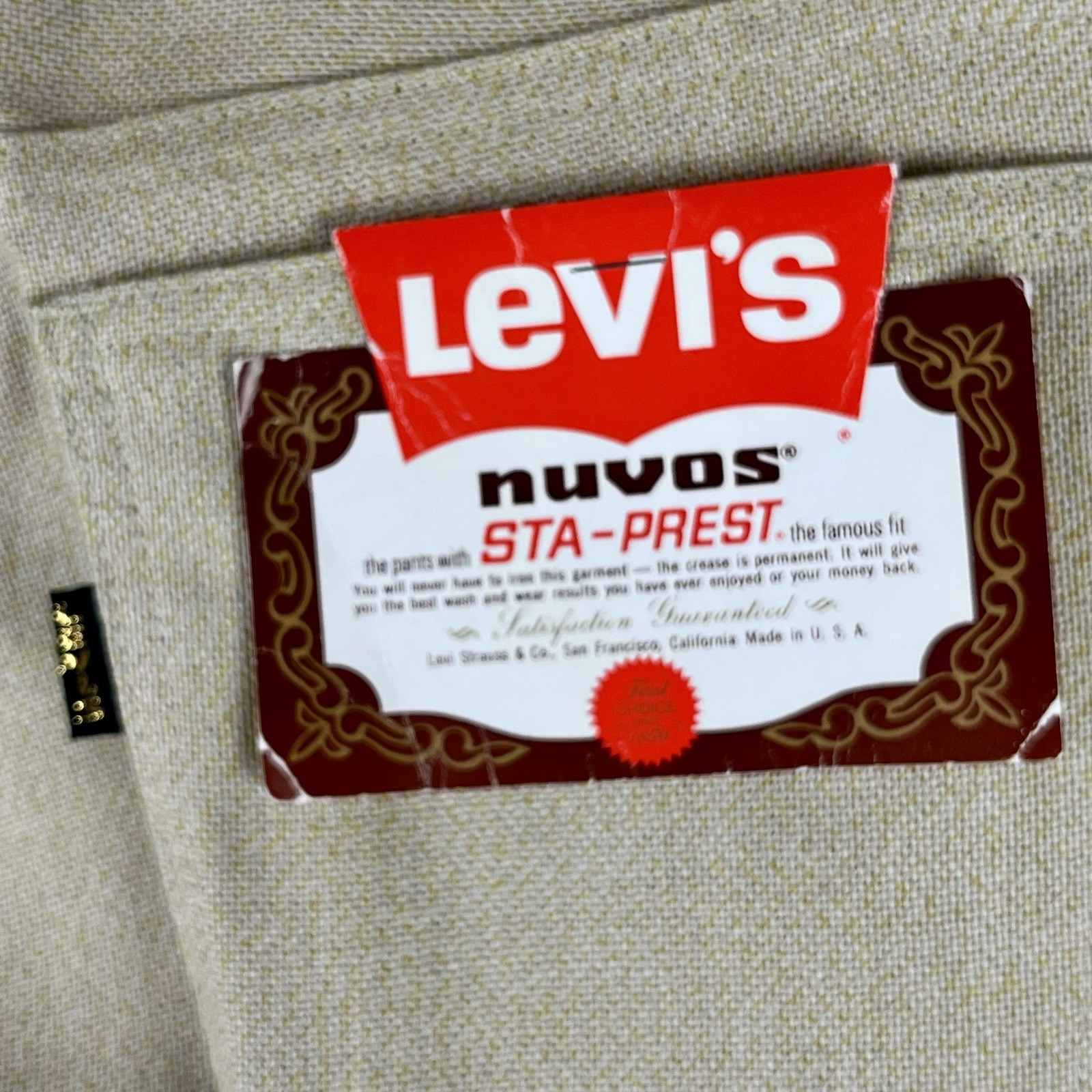 NOS Deadstock VTG 70s Levis Sta Prest Nuvos Big E tan pants talon zip 29 x 29