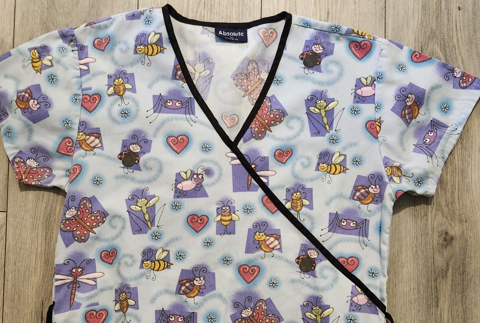 как выглядит ABSOLUTE WOMENS SIZE XSMALL COLORFUL HOSPITAL NURSING MEDICAL SCRUBS TOP фото