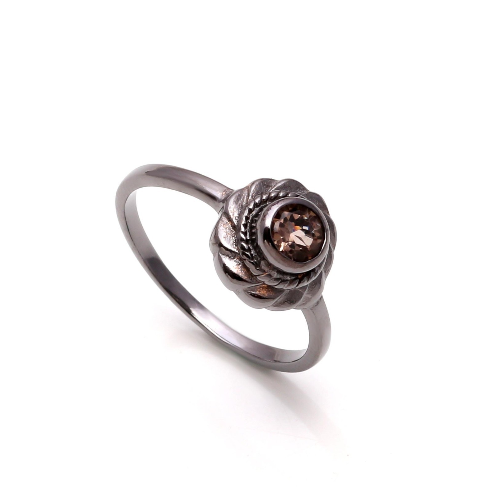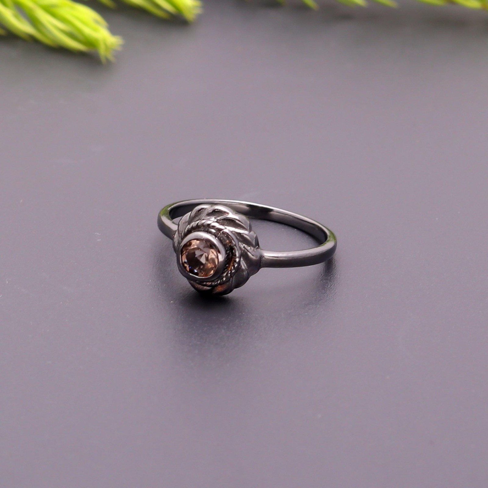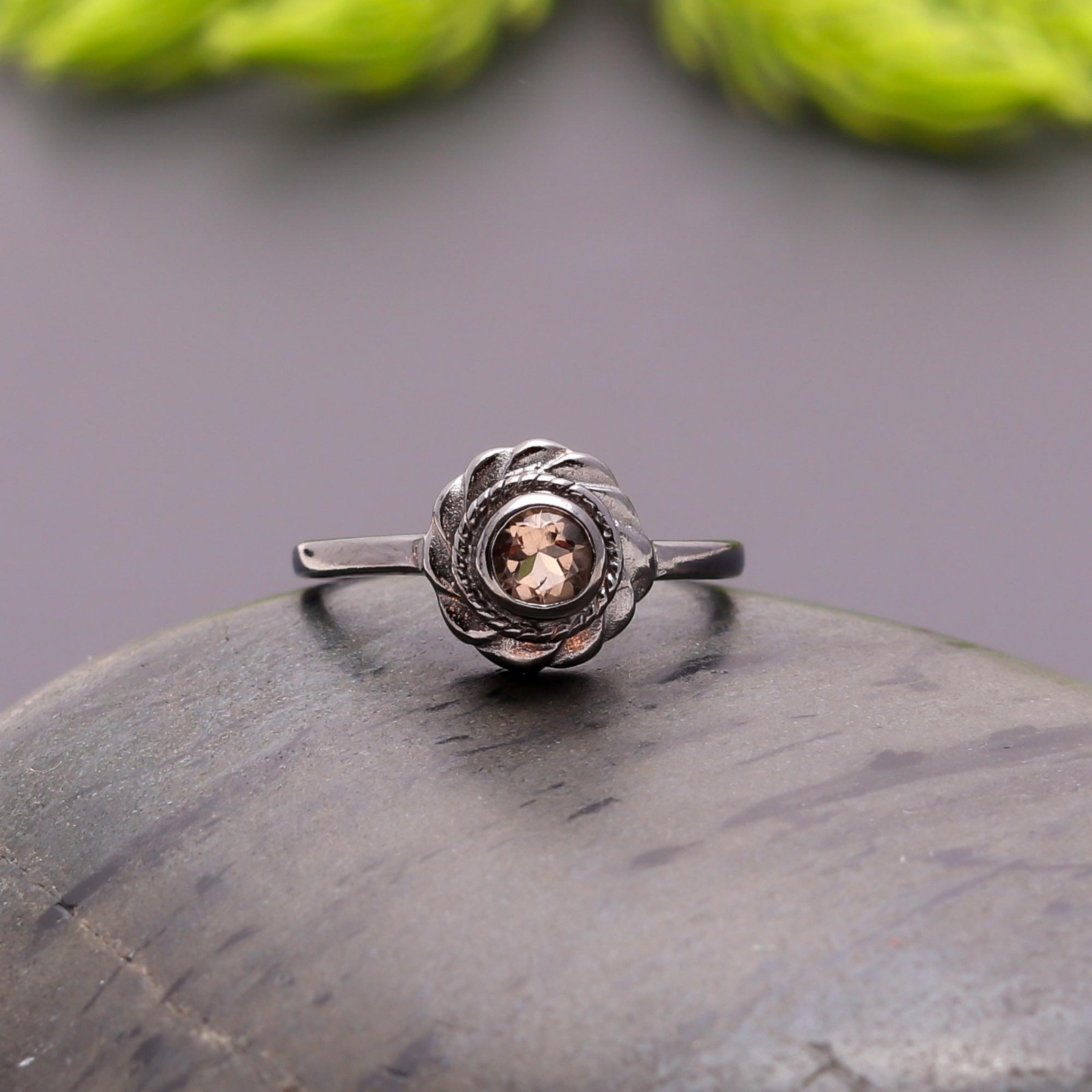 Natural Smoky Quartz Round Ring 925 Sterling Silver Black Oxidized Boho Jewelry