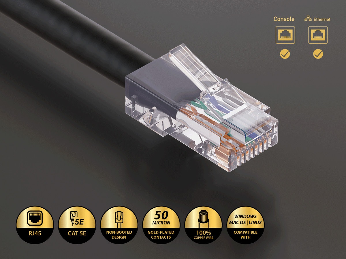 10ft Cat5e UTP Non-Booted Ethernet Network Patch Cable 24AWG Bare Copper, Black