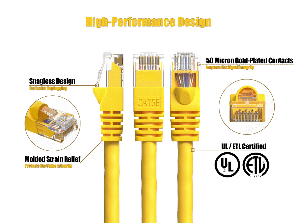 25ft Cat5e UTP Ethernet Network Patch Cable Snagless 24AWG Bare Copper, Yellow