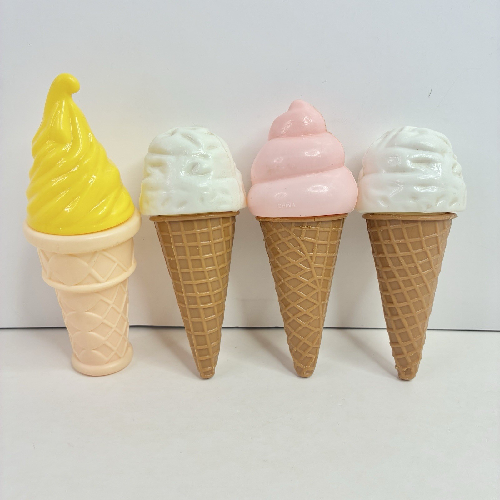 4 Pretend Ice Cream Cones Play Food Vanilla Strawberry Banana Lemon Lot READ