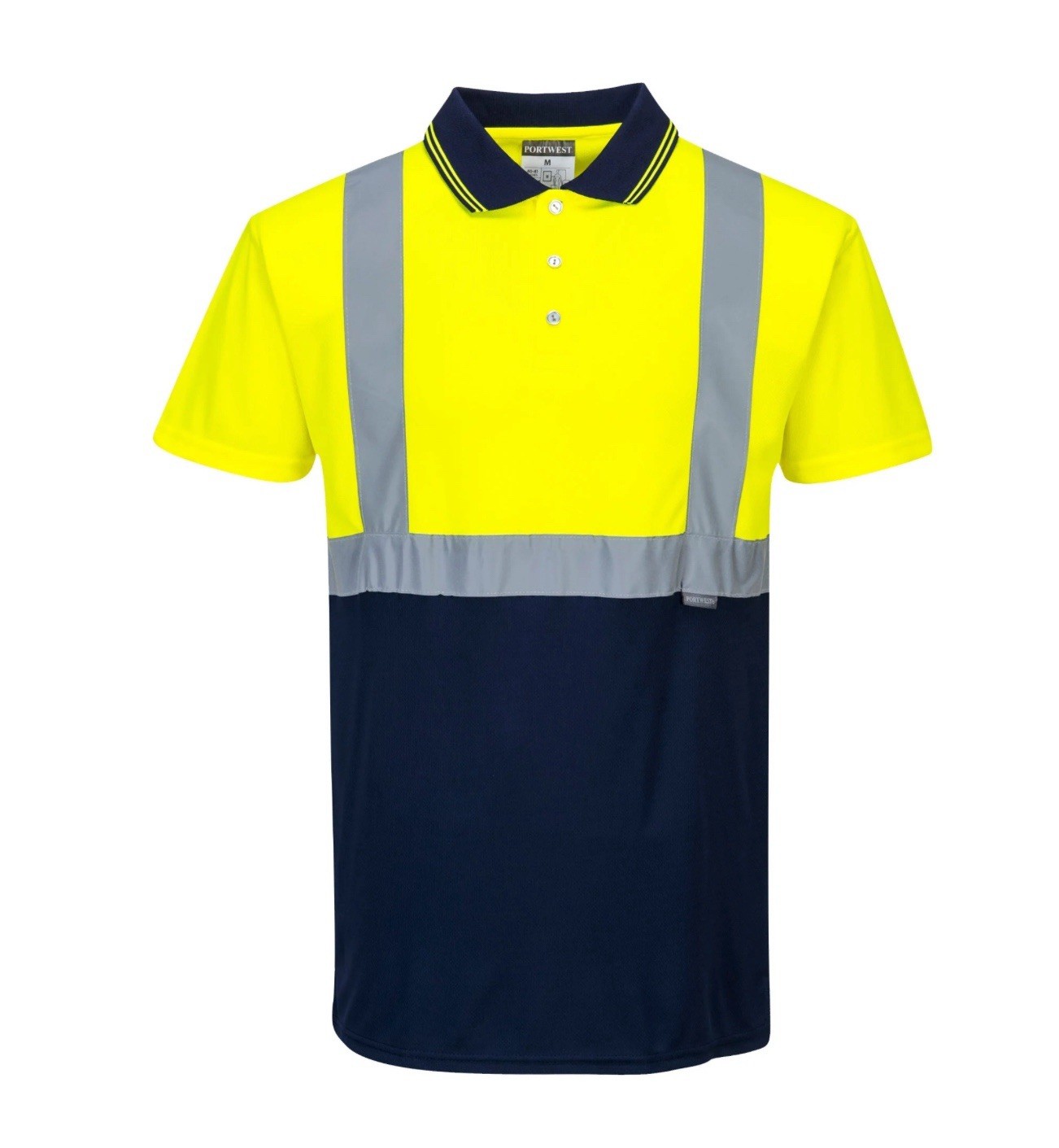 PORTWEST Two Tone Hi Vis Polo Shirt - ANSI Class 1 - S479 - XL - NAVY/YELLOW
