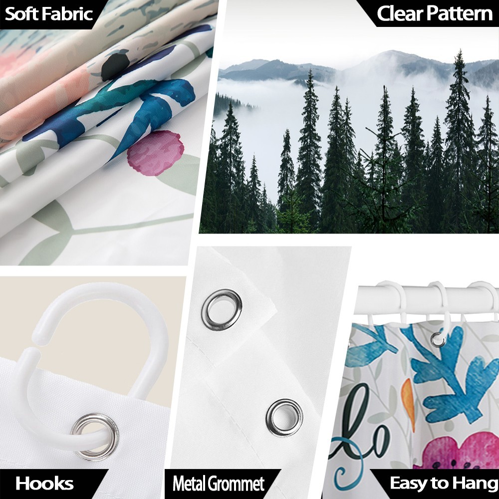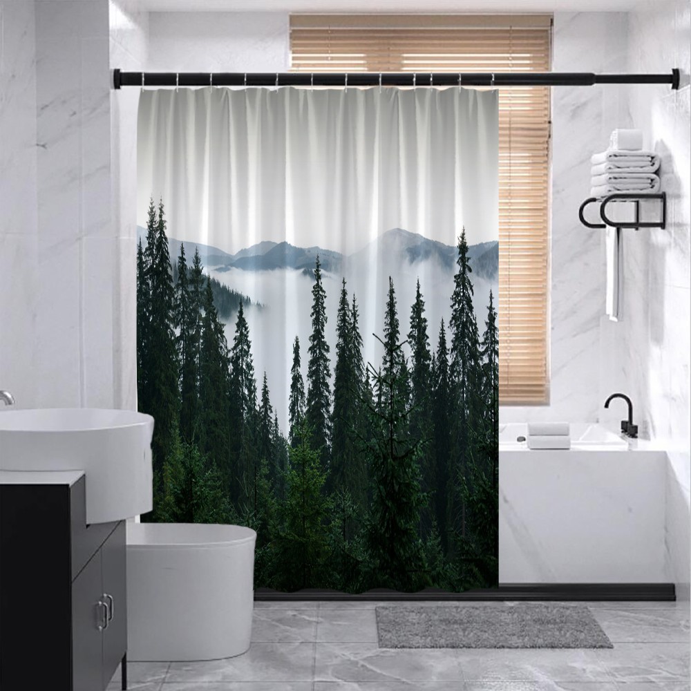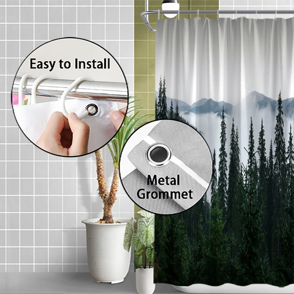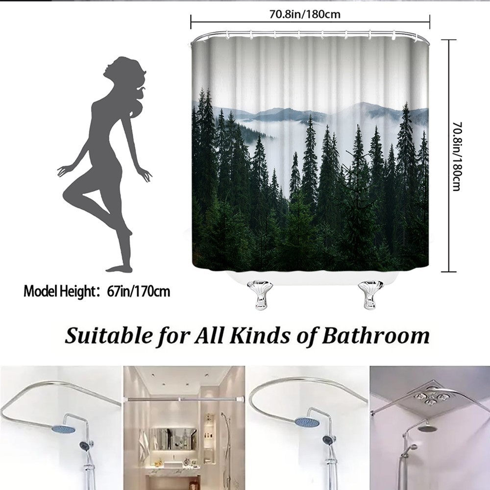 Woodland Shower Curtain Narrow RV Forest Mountain Camping Decor with Hooks