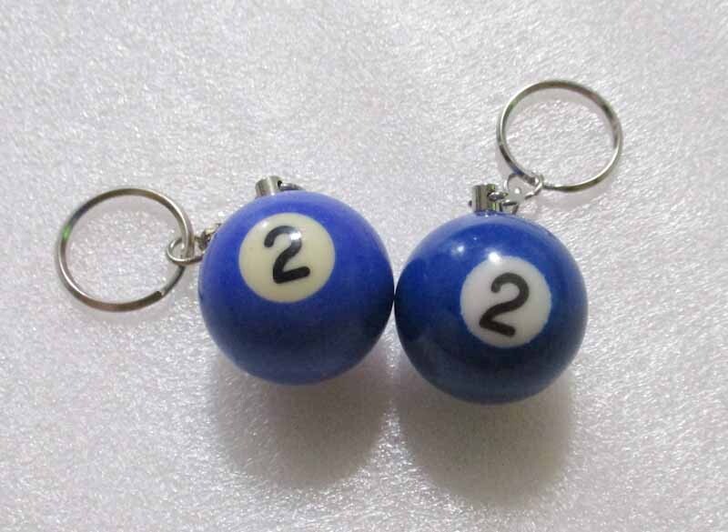 • BILLIARD 9 BALL POOL Novelty KEYCHAIN KEYRING CHAIN 32mm dia No 2 BLUE Sport