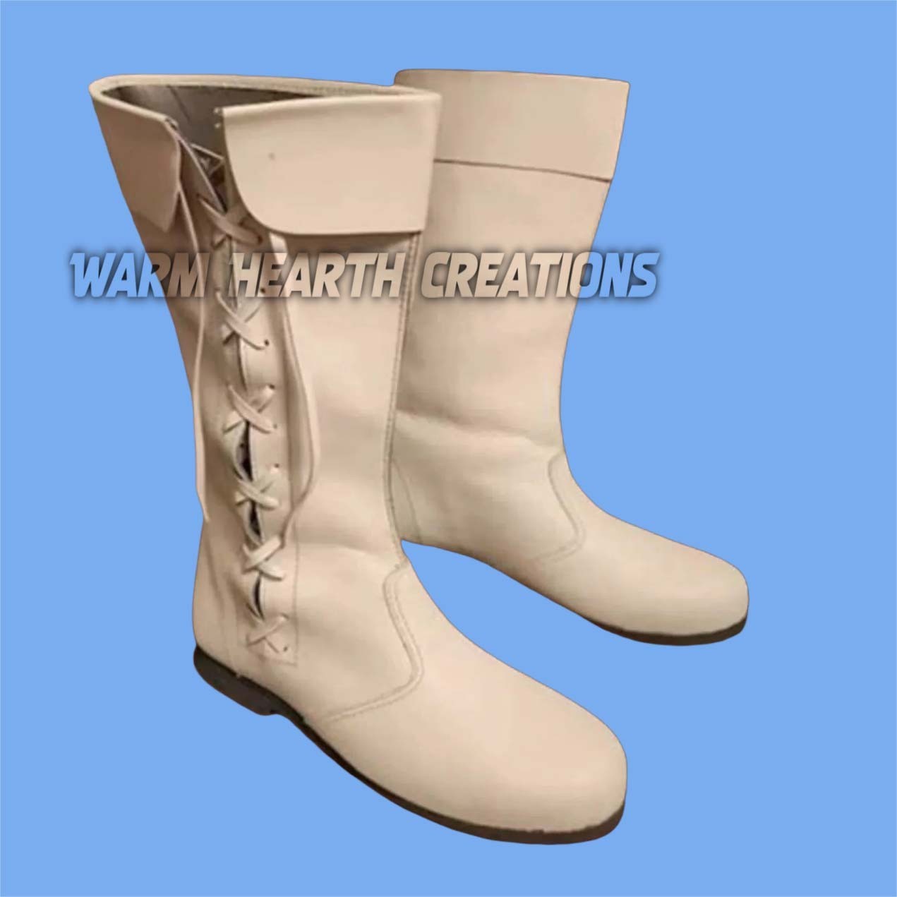Medieval Long Leather Boots Reenactment SCA LARP Riding Shoes Historical Boots