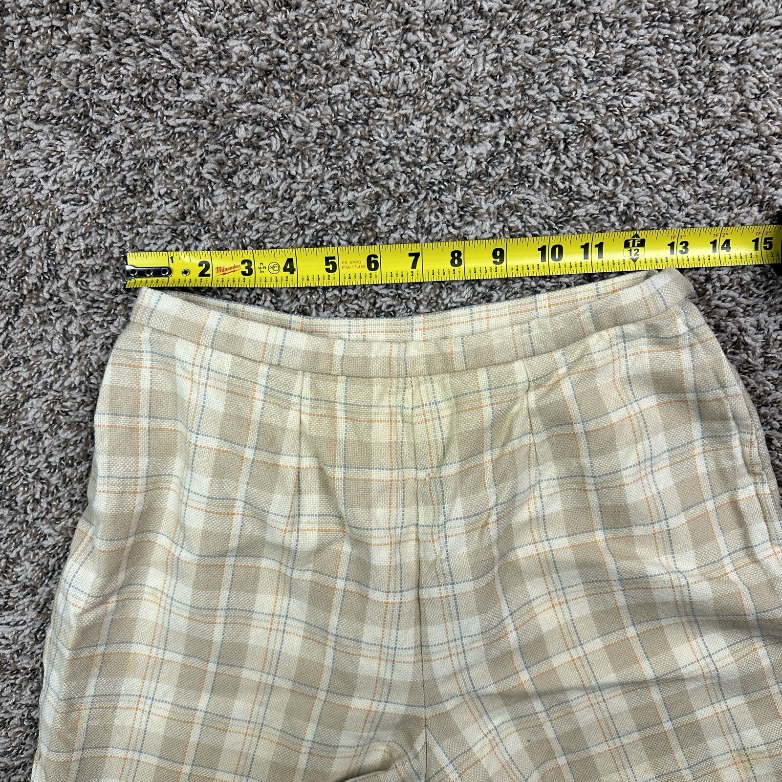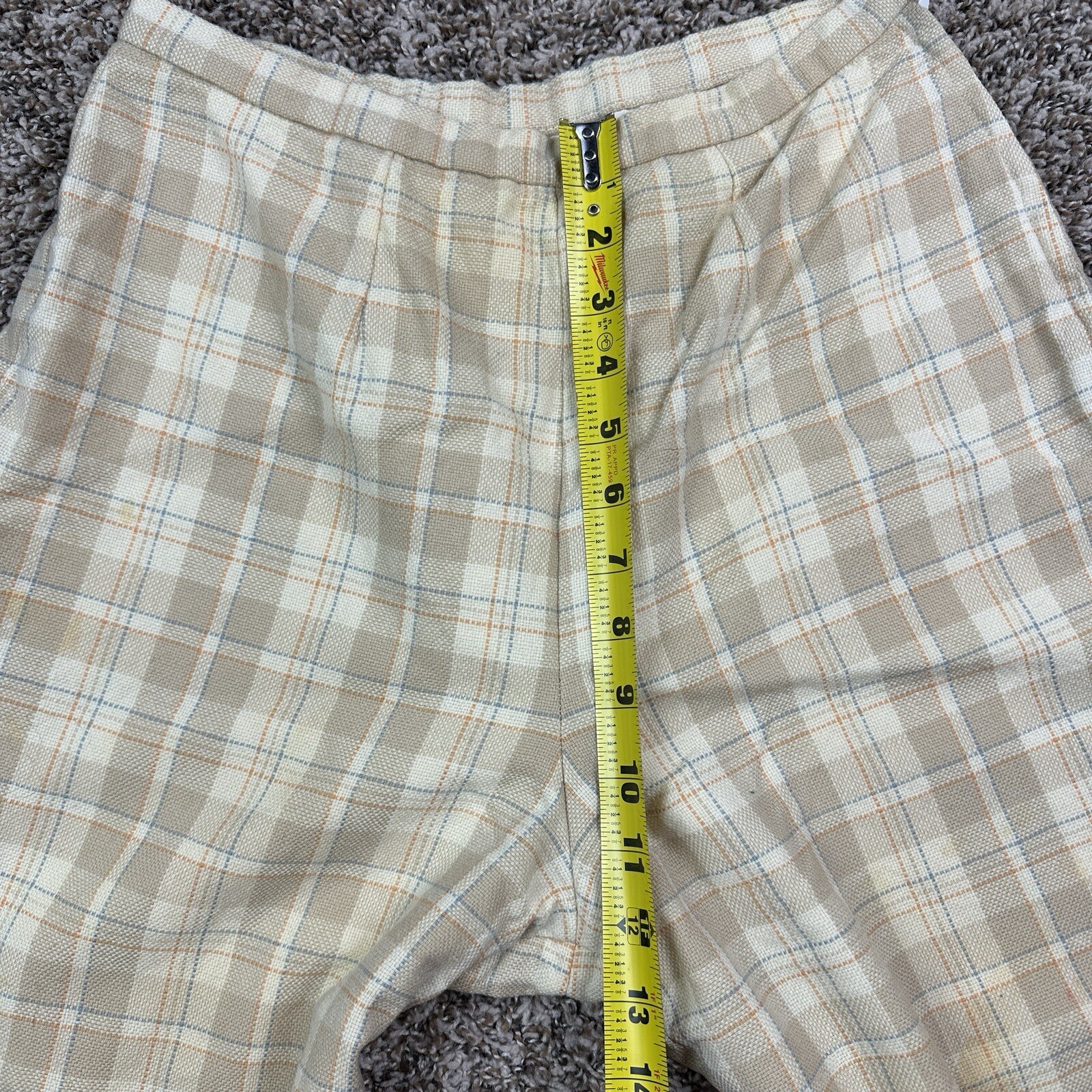 как выглядит Vtg Pendleton Cream Windowpane Plaid Womens Wool Pants Lined STAINS Sz 14 фото
