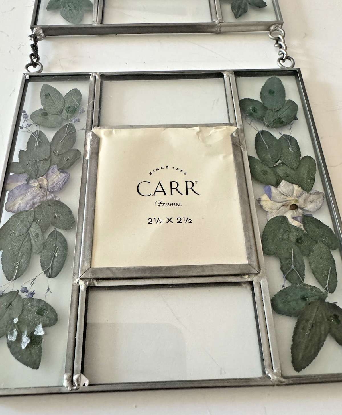 Leaded Glass 2 Photo Wall Frame Botanical Pressed Flowers Holds 2 2.5 x2.5