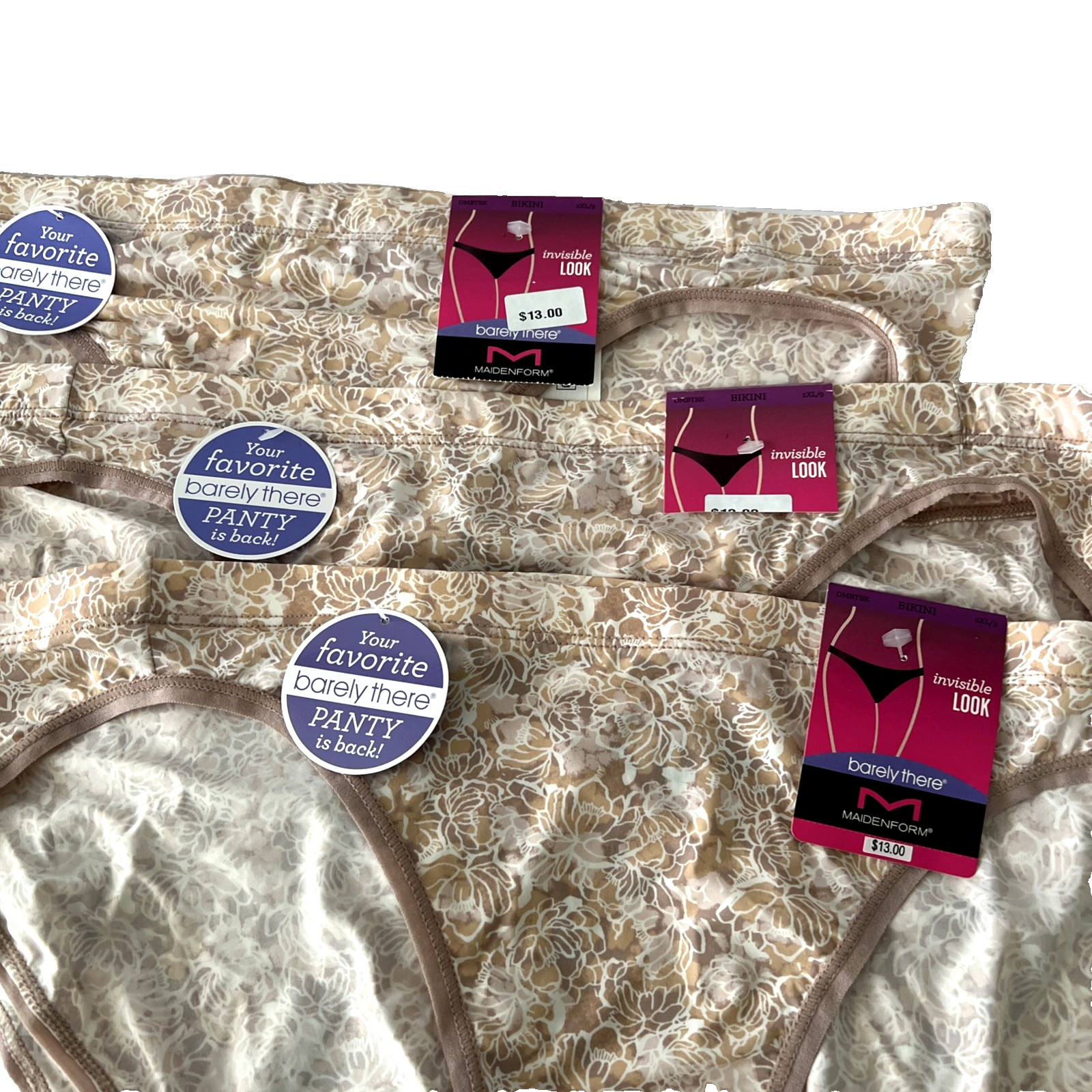 NEW Maidenform 3 Pair Barely There Invisible Look Bikini Panties 2XL/9