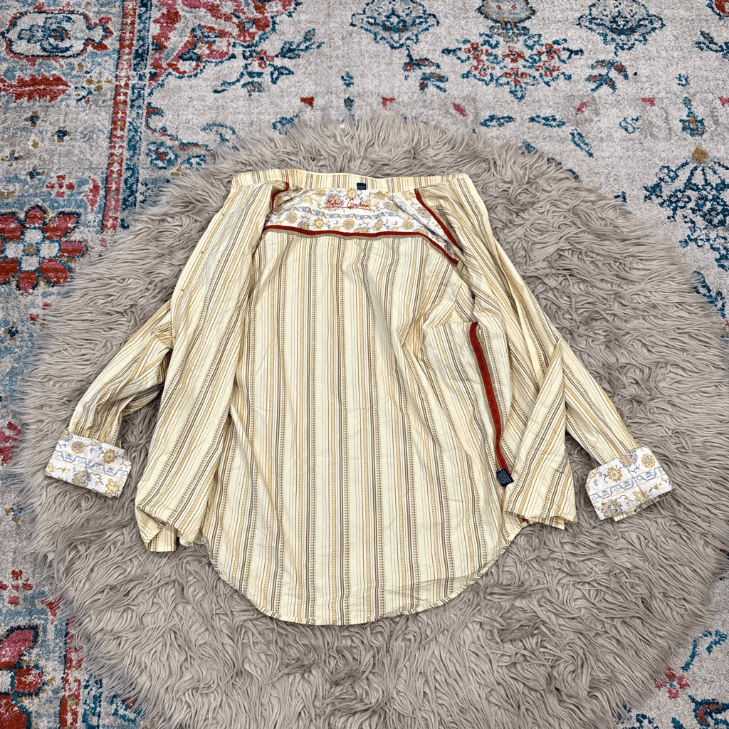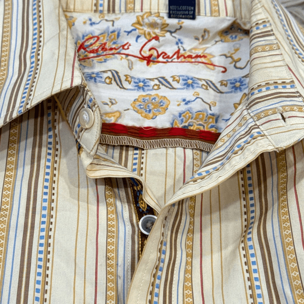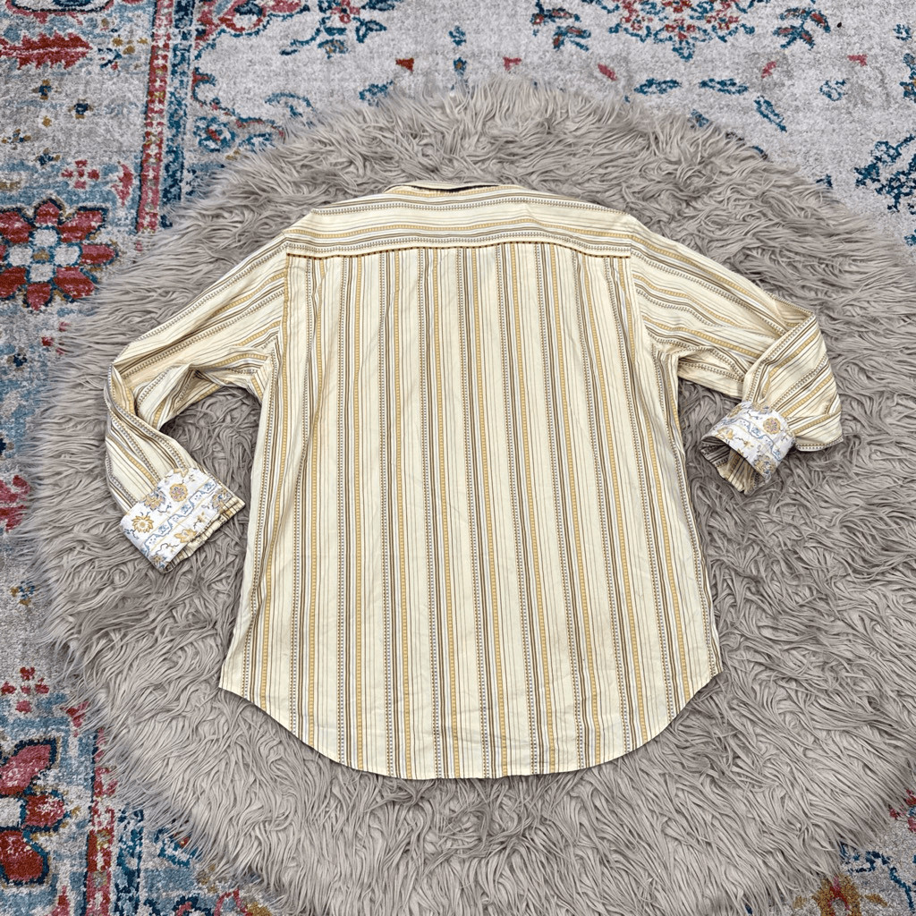 Robert Graham cream Striped Flip Cuffs Button Shirt Men's XL