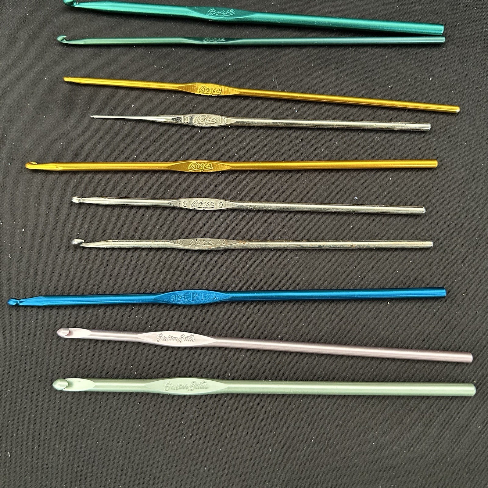 Vintage Lot of 12 Metal Crochet Hooks Various Sizes - 10 Boye 2 Susan Bates USA