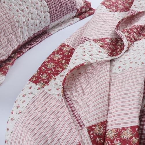 Cotton Bedspread Quilt Bedding Sets King Red White Patchwork Pattern
