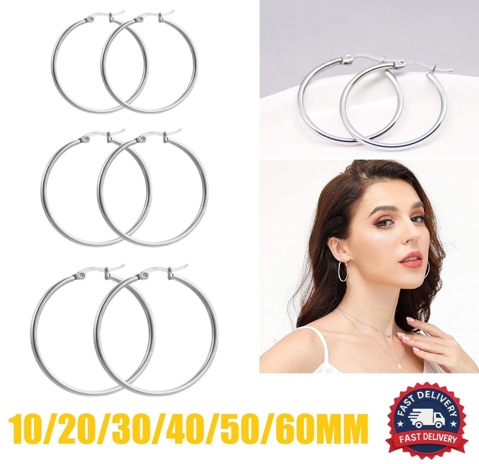 Sterling Silver Round Hoop Earring for Women Lightweight Click-Top Hoop Earring
