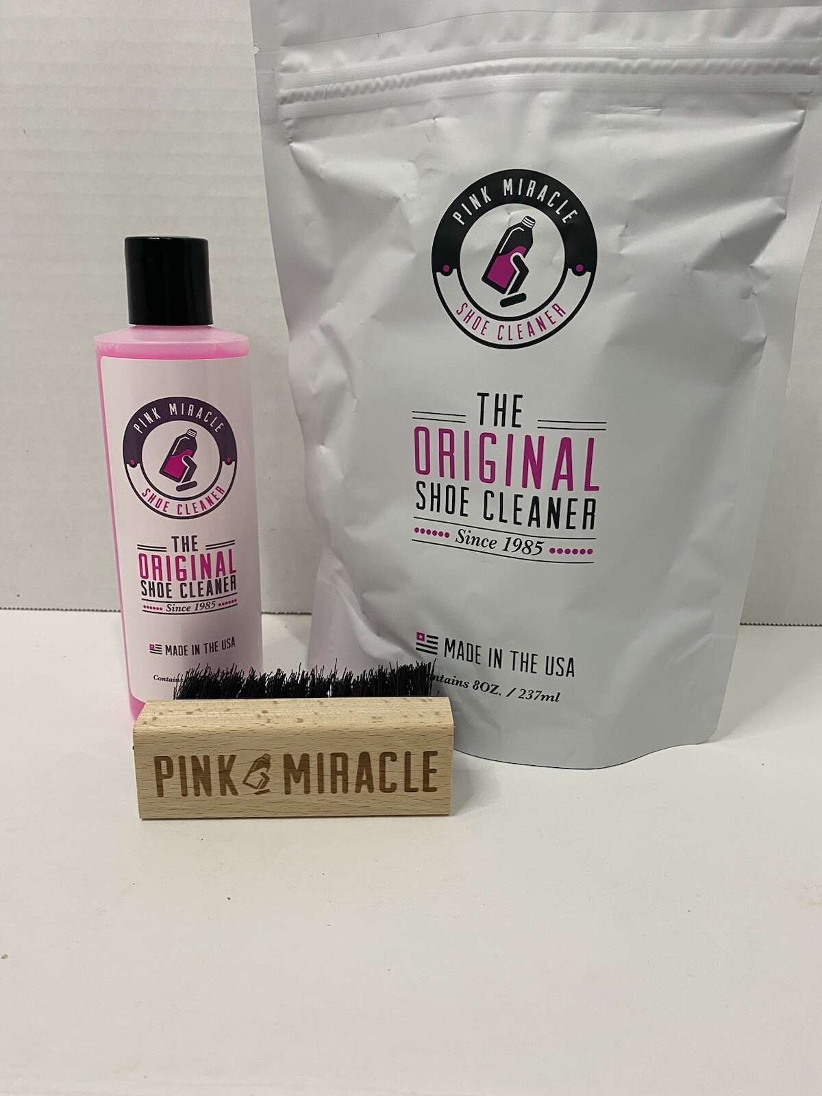 8 oz Pink Miracle Shoe Cleaner Kit complete with bottle and brush