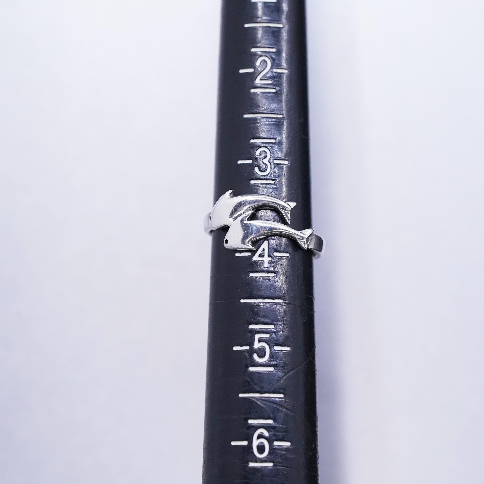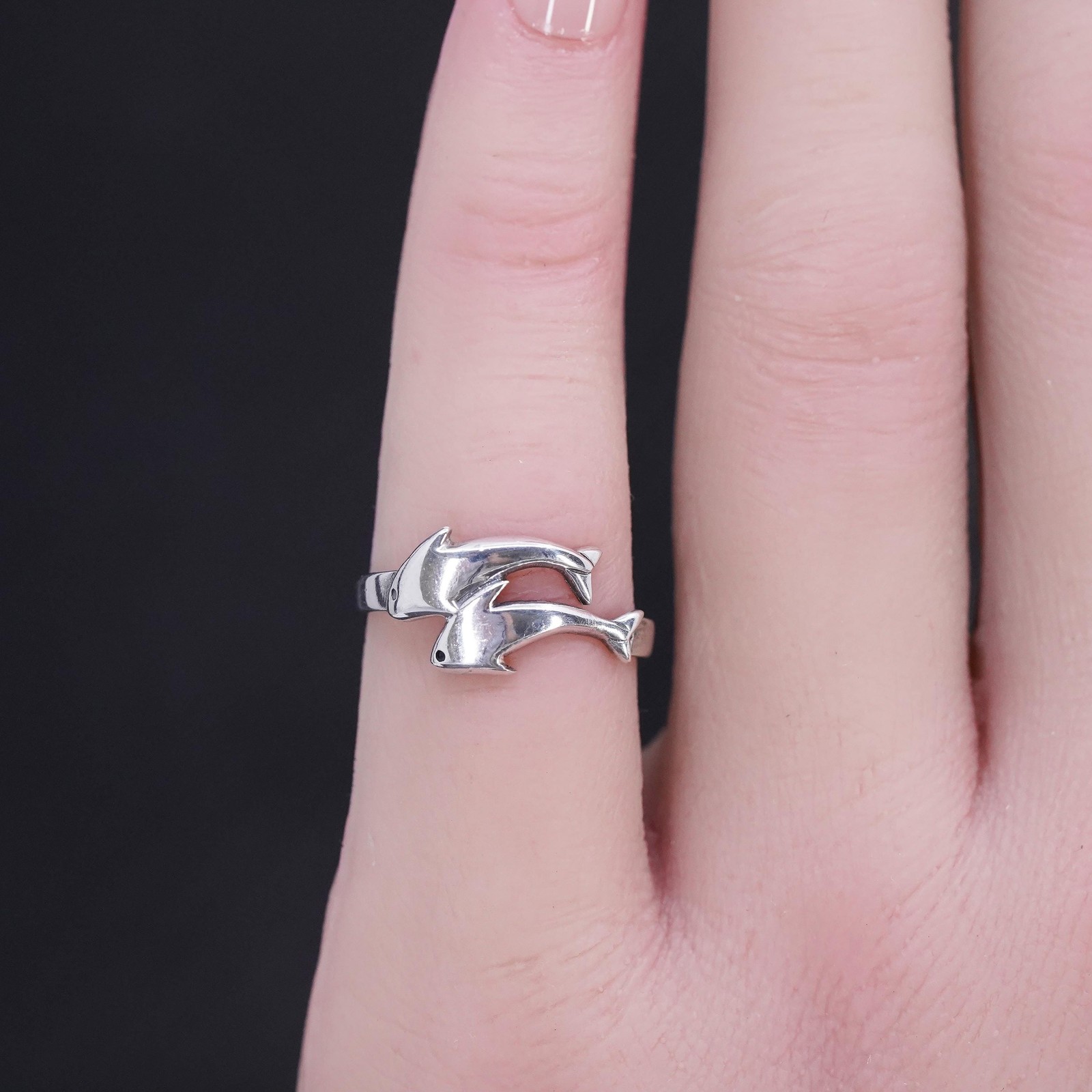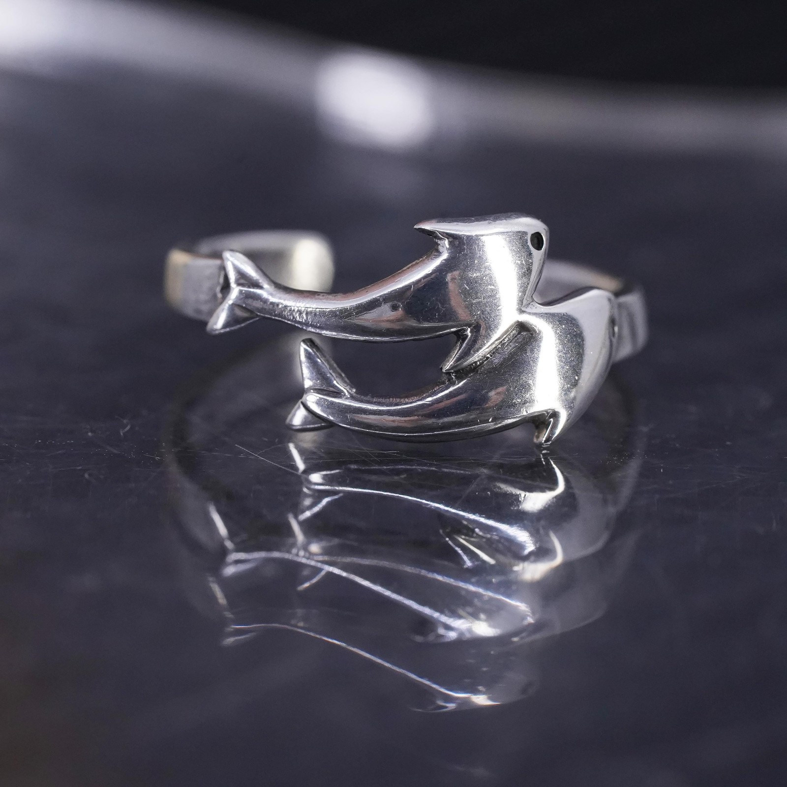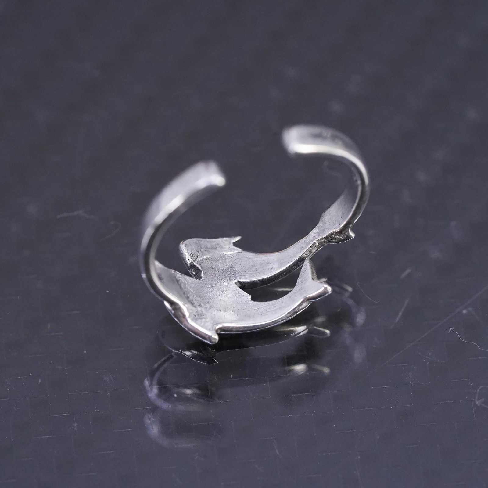 size adjustable, vintage sterling silver 925 handmade wrap dolphin band ring