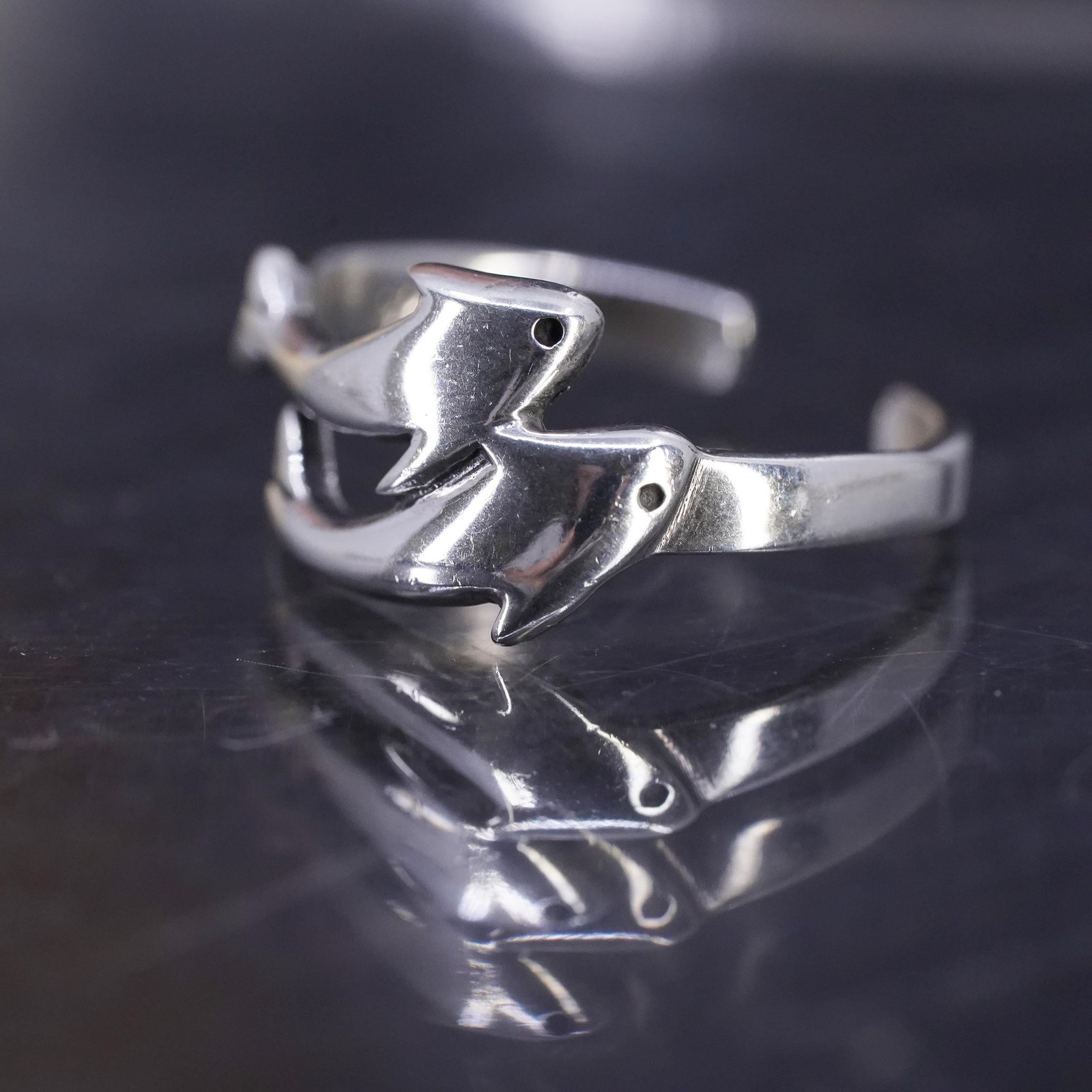 как выглядит size adjustable, vintage sterling silver 925 handmade wrap dolphin band ring фото