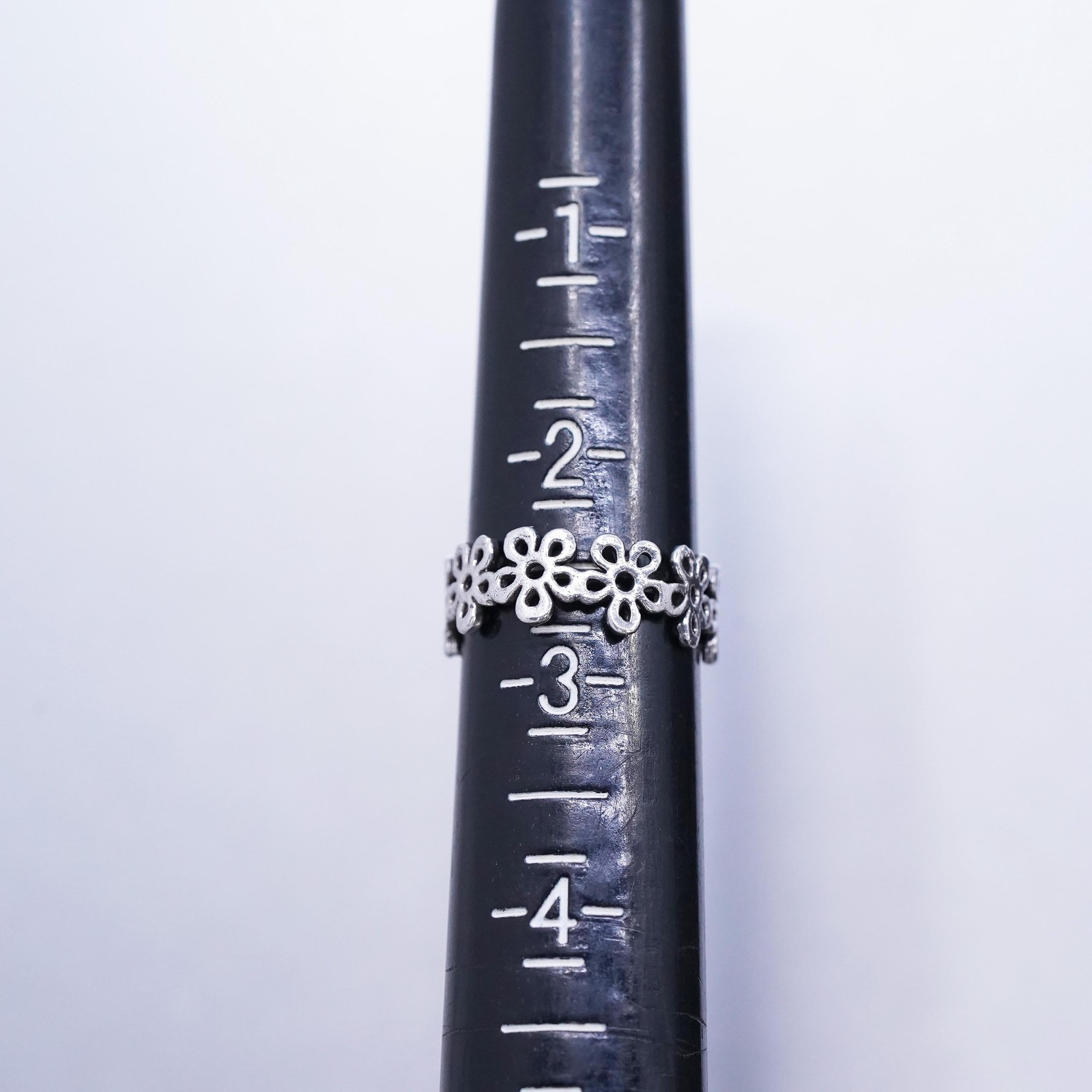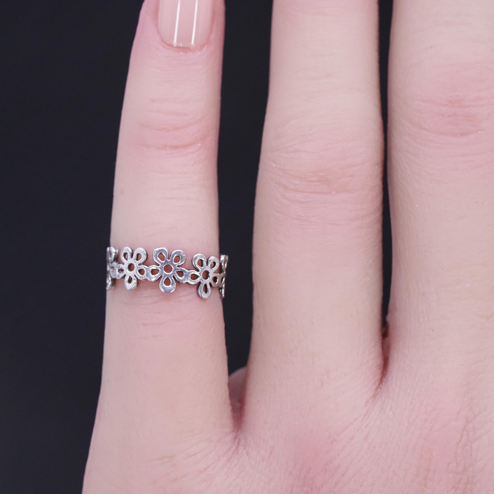 как выглядит size 2.5, vintage sterling silver 925 handmade rose flower open band ring фото
