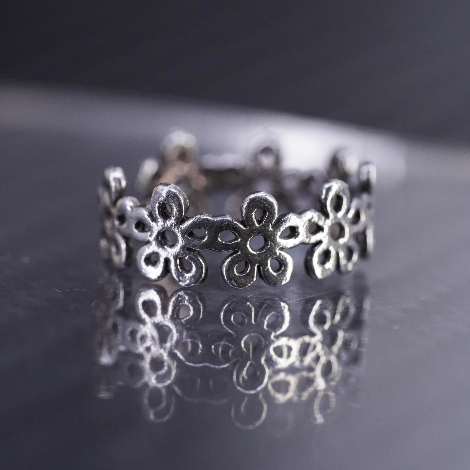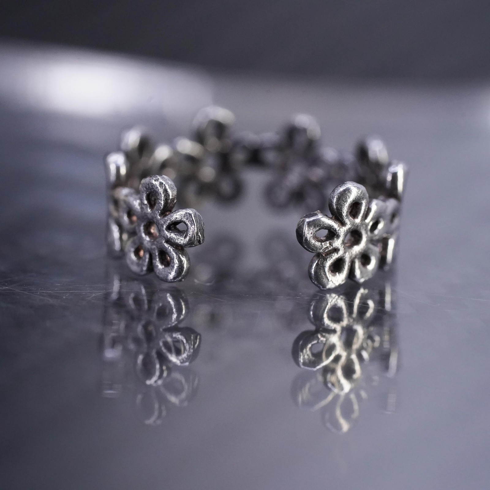 size 2.5, vintage sterling silver 925 handmade rose flower open band ring