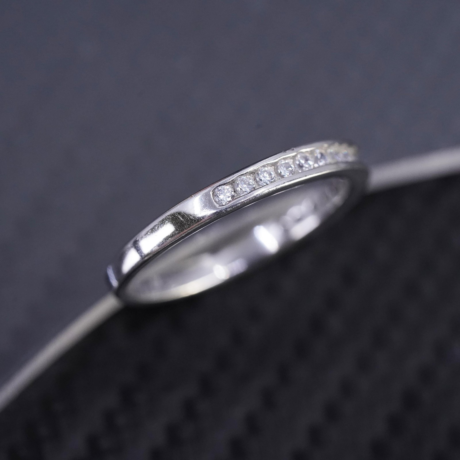 Size 7, vintage sterling silver 925 stackable band ring with cluster cz