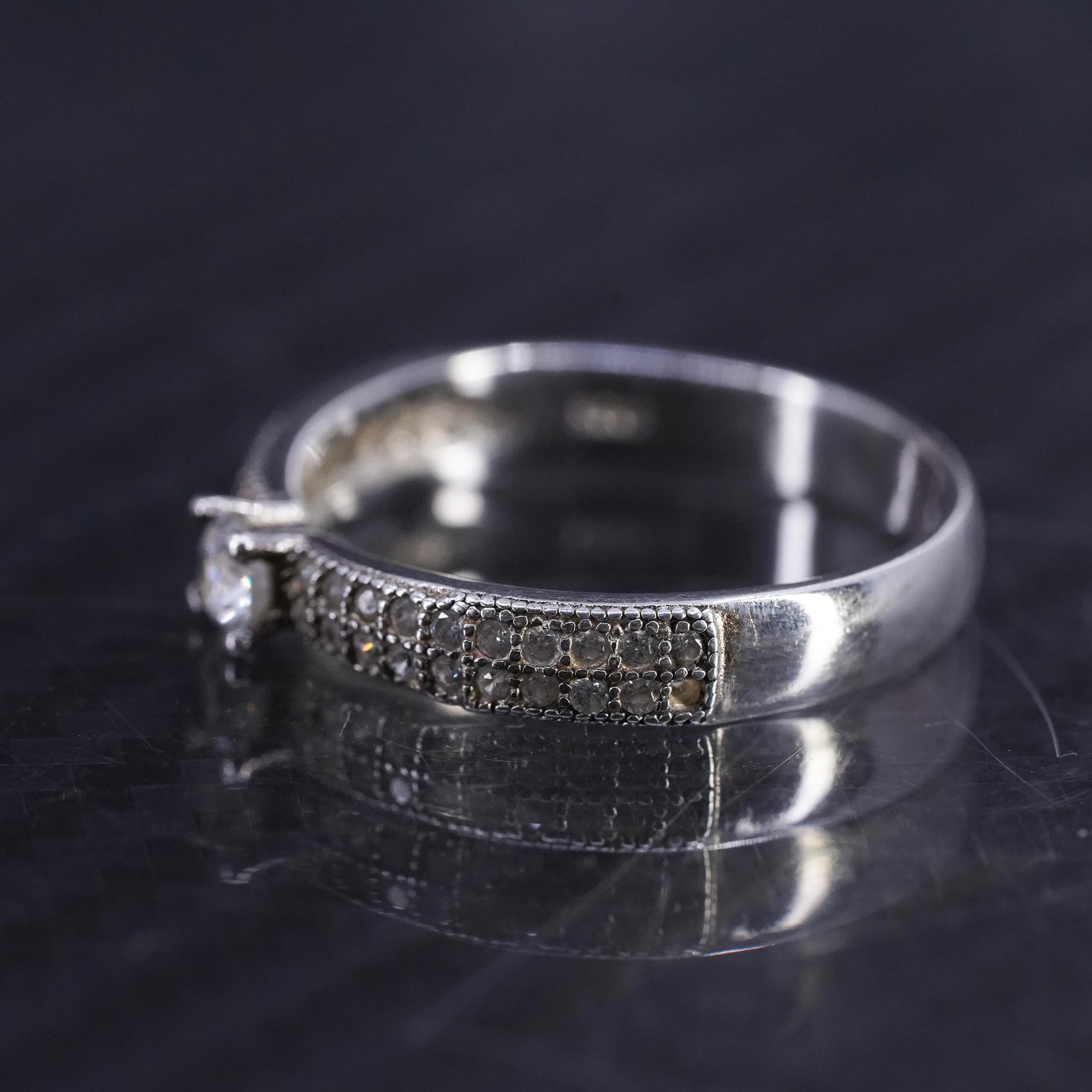 Size 7, vintage sterling silver 925 engagement ring with cluster cz