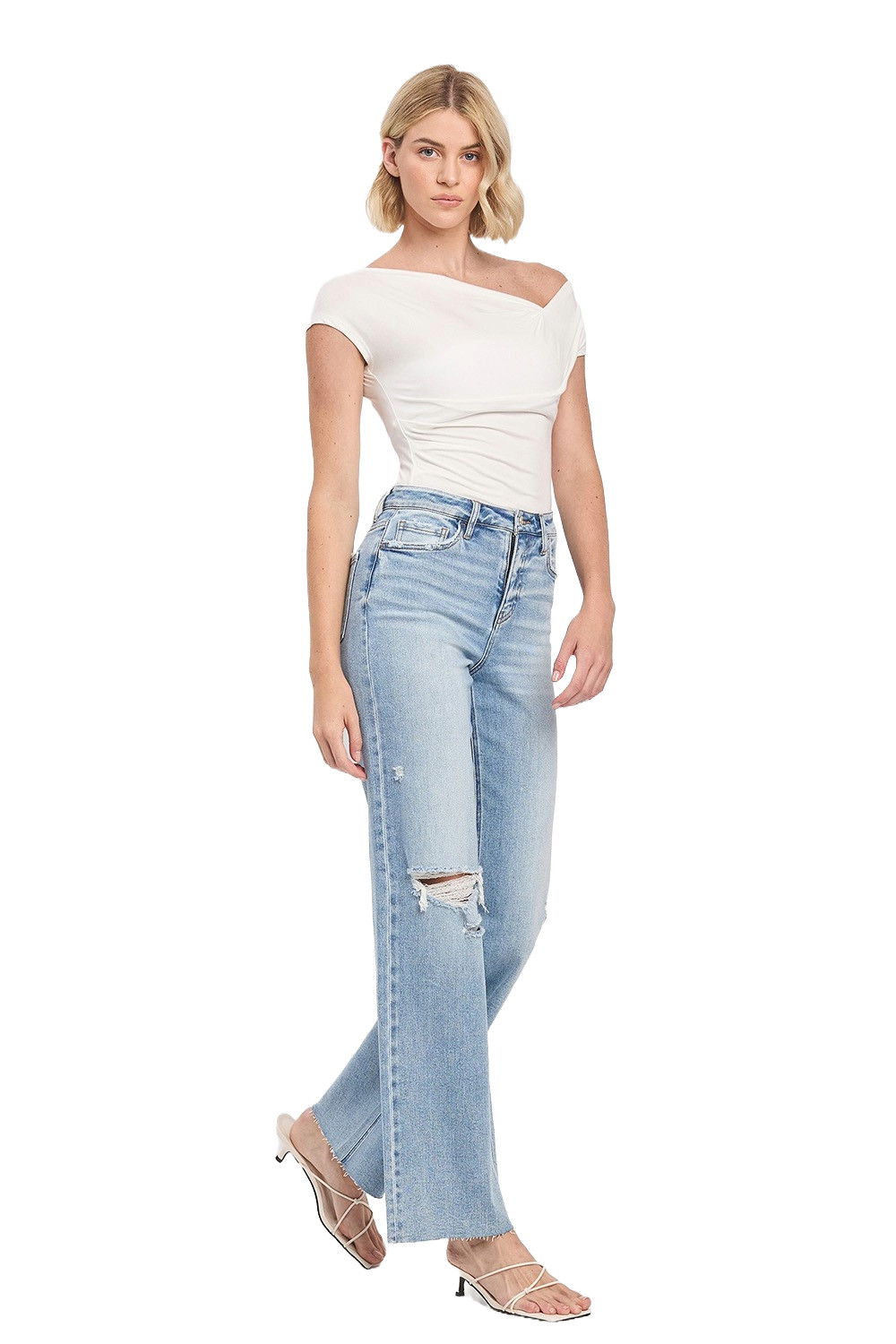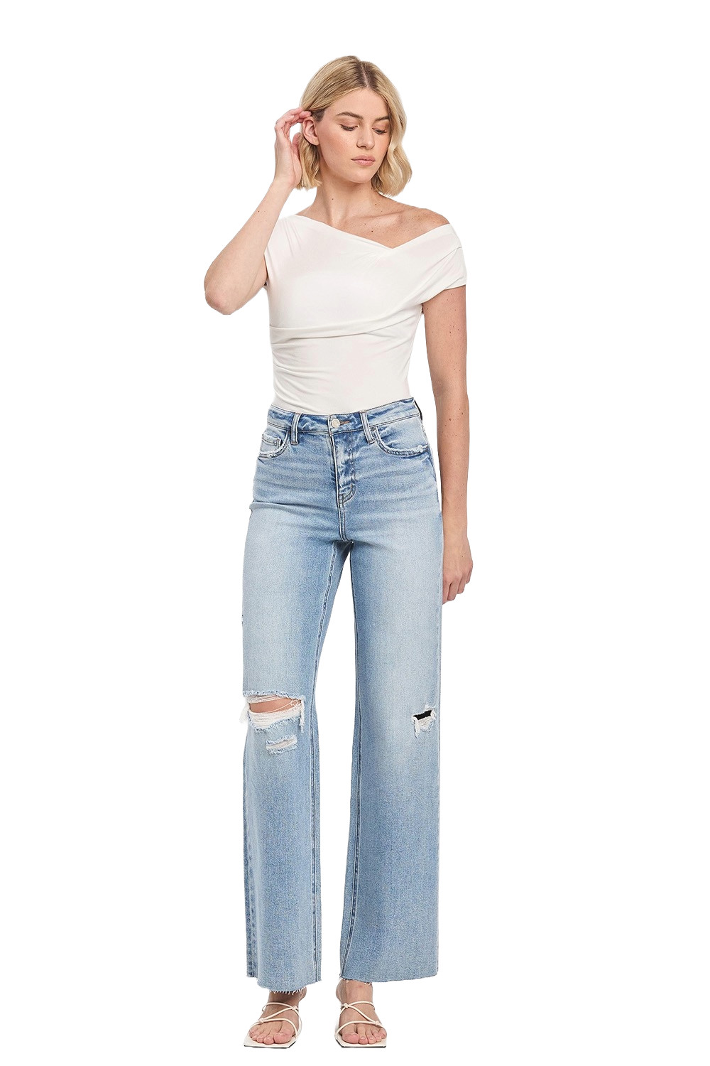 как выглядит VERVET by Flying Monkey High Rise Cut Raw Hem Wide Leg Jeans T6597 Refulgent фото