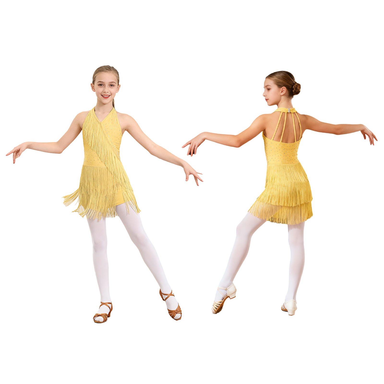 Kids Girls Dancewear Halter Leotard Rhinestones Jumpsuit Sleeveless Costumes