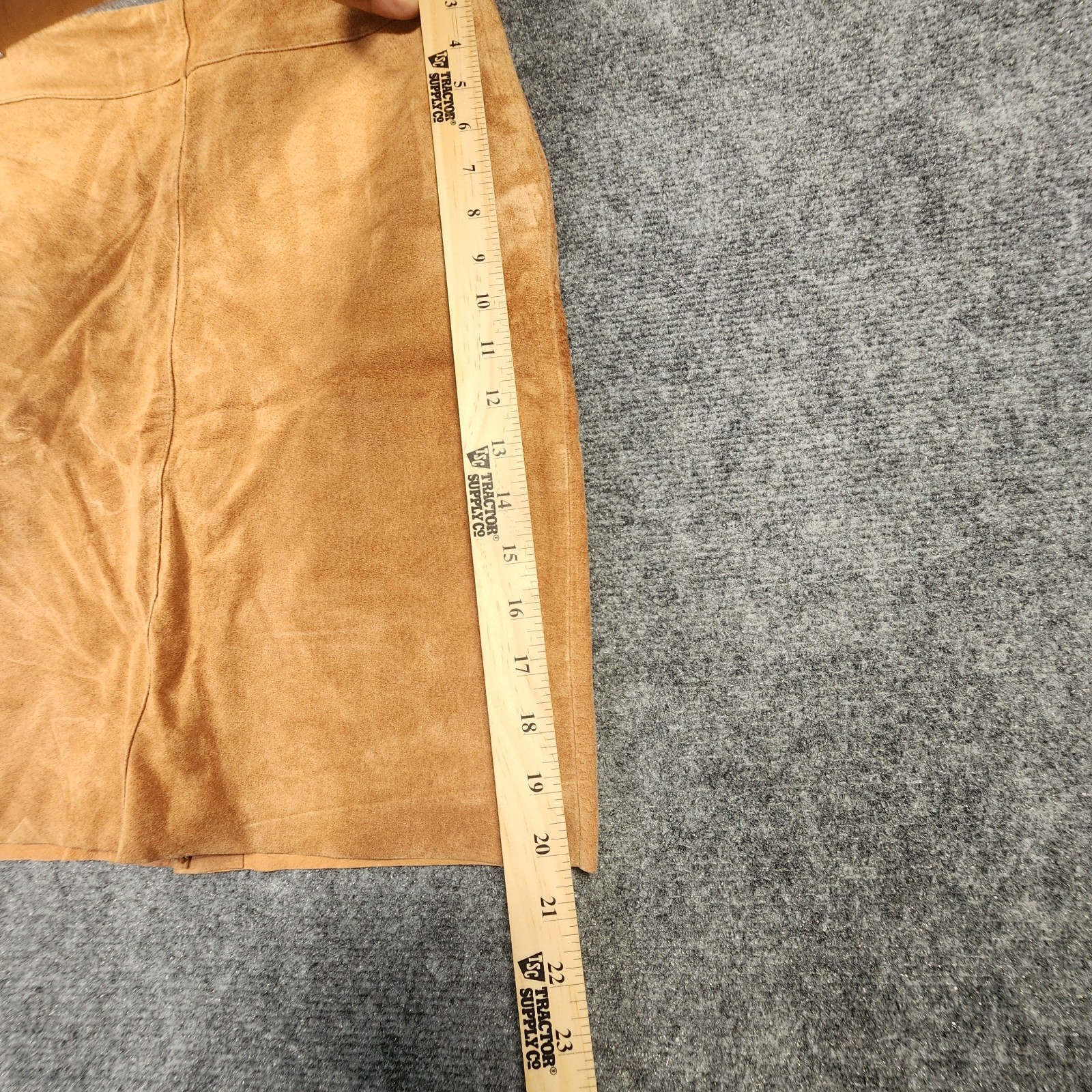 как выглядит VINTAGE Express World Brand Camel/Khaki Suede 100 Leather Pencil Skirt Size 3/4 фото