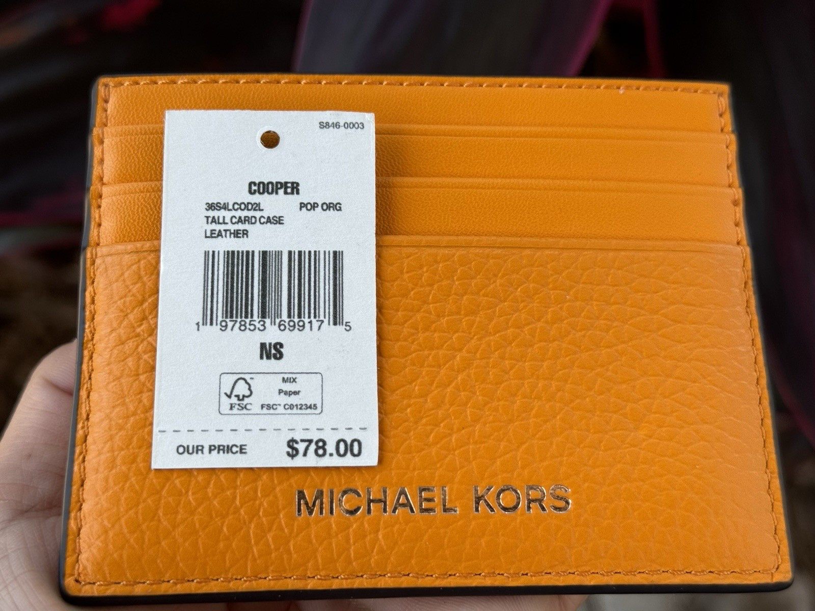 MICHAEL KORS JET SET TRAVEL COOPER CARD CASE WALLET POP ORANGE
