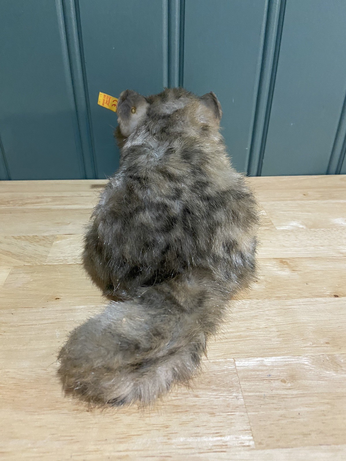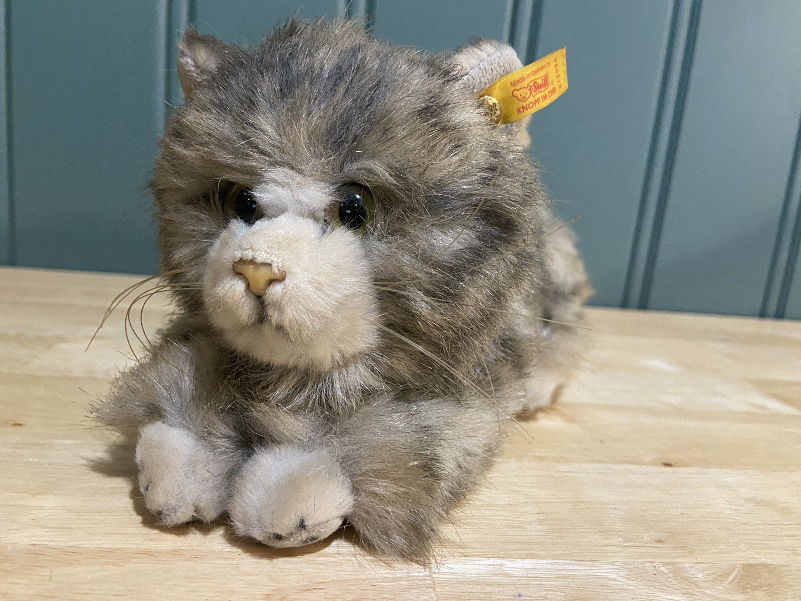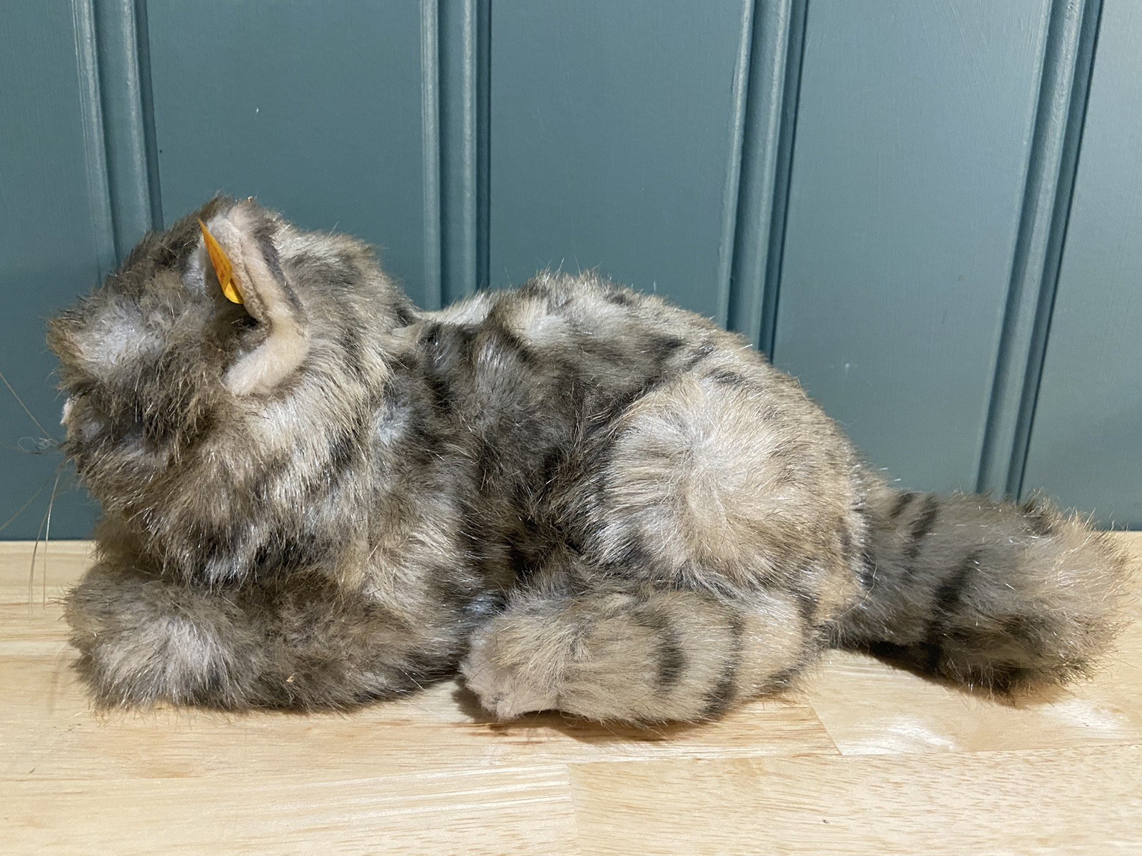 Steiff fao Schwartz Whiskas kitty cat button in ear 075094 Gray Laying Plush