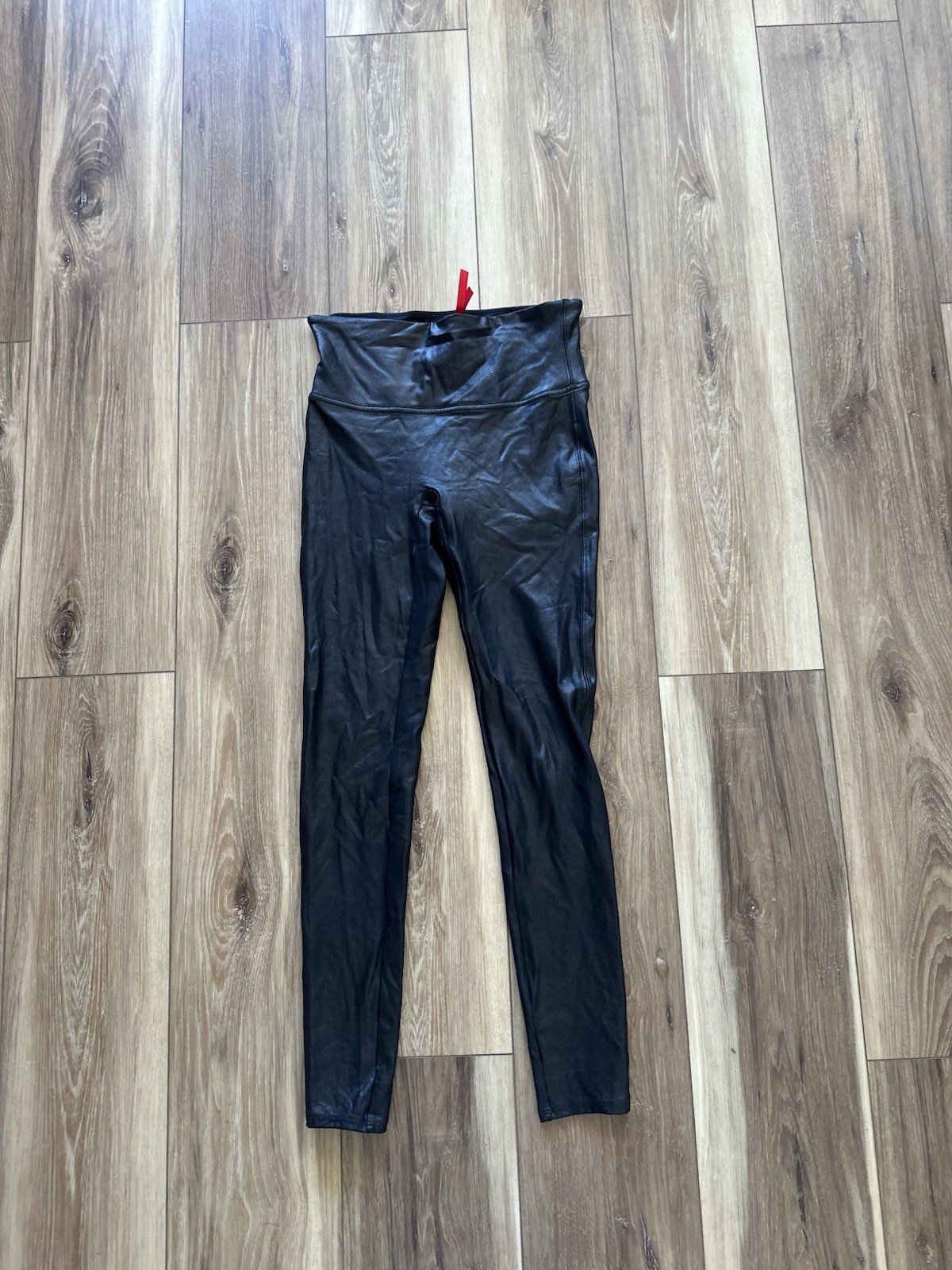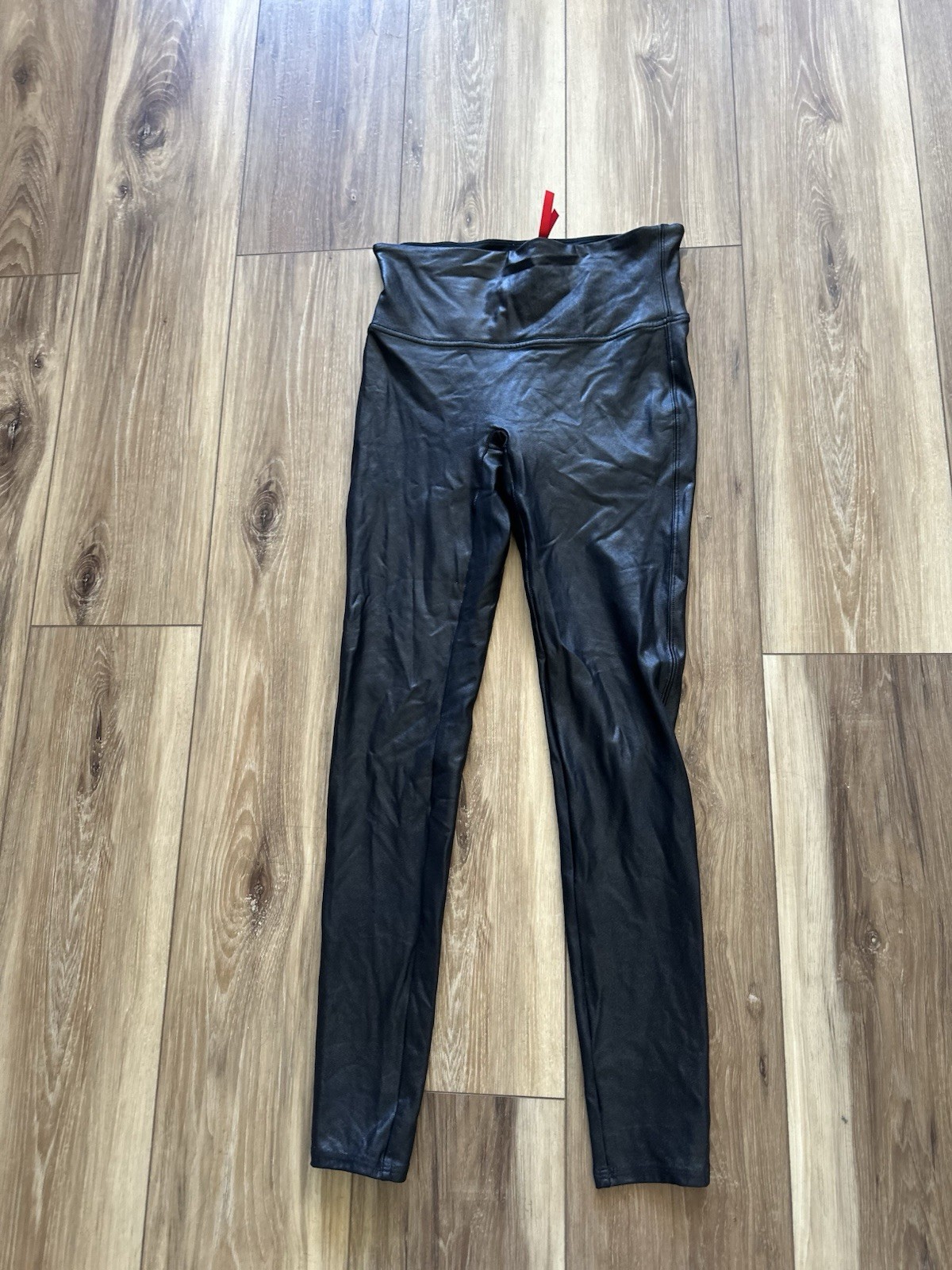 как выглядит Spanx Womens Black High-Waisted faux leather Leggings size medium фото