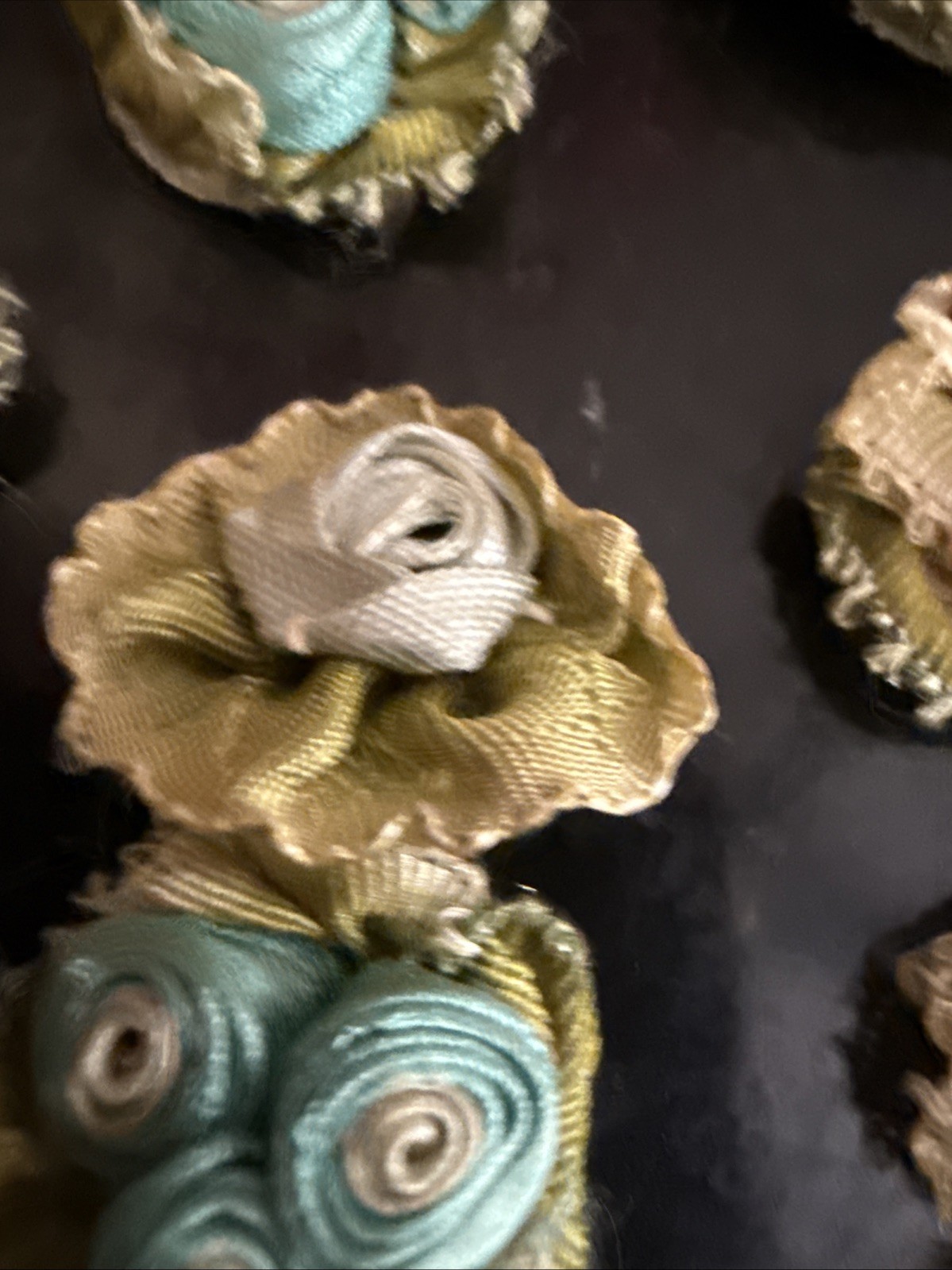 VTG 3D Handmade Rolled Cluster Mini Silk Roses Applique 109 pcs b1