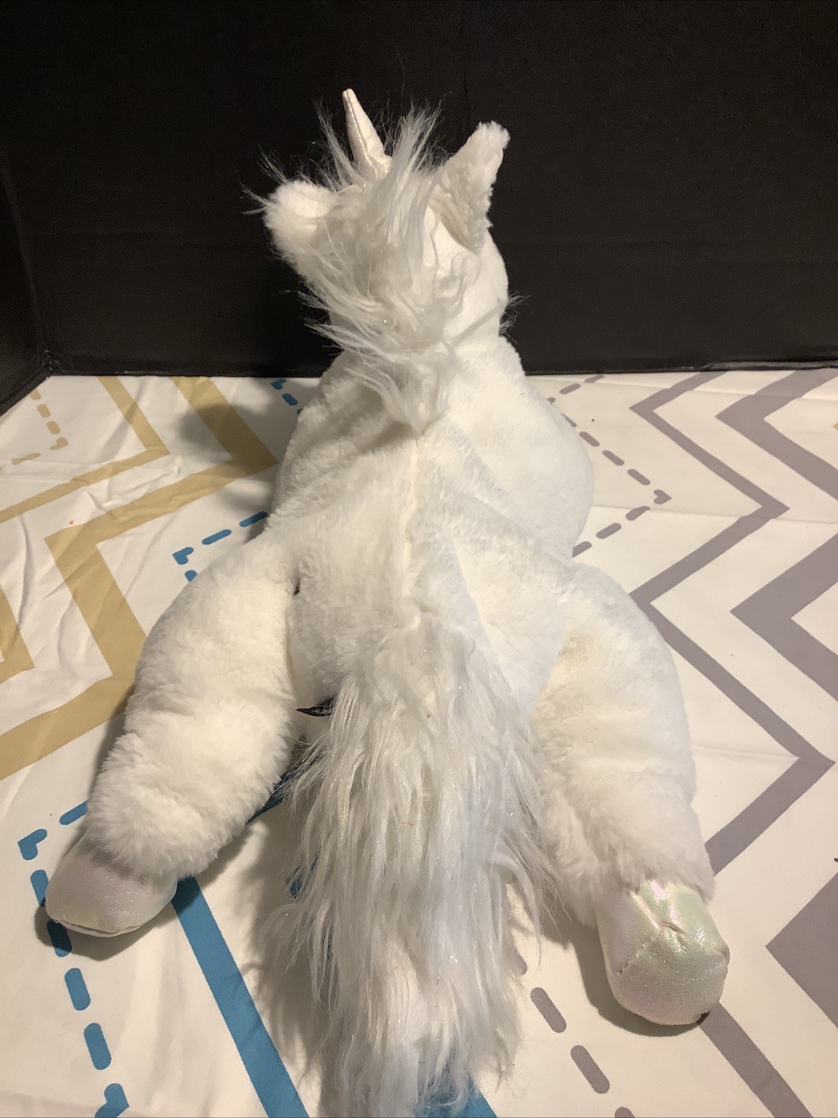 как выглядит VGUC-21 Fao schwarz plush Unicorn Plushie Iridescent Tinsel Mane Tail фото