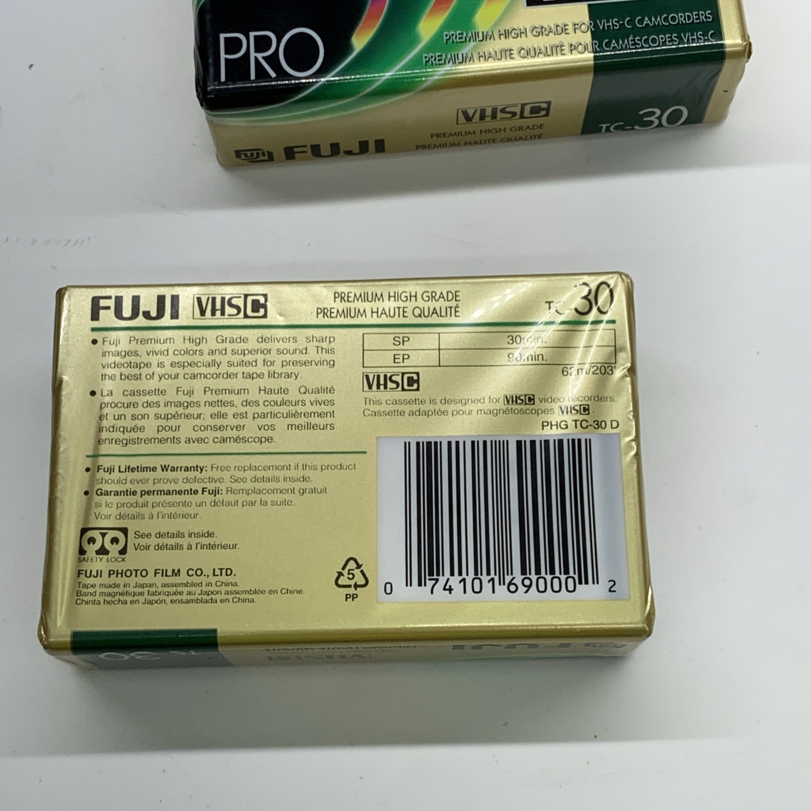 Lot of 2 Fuji VHS-C 30 Premium Grade Pro Videocassette TC-30 New Sealed