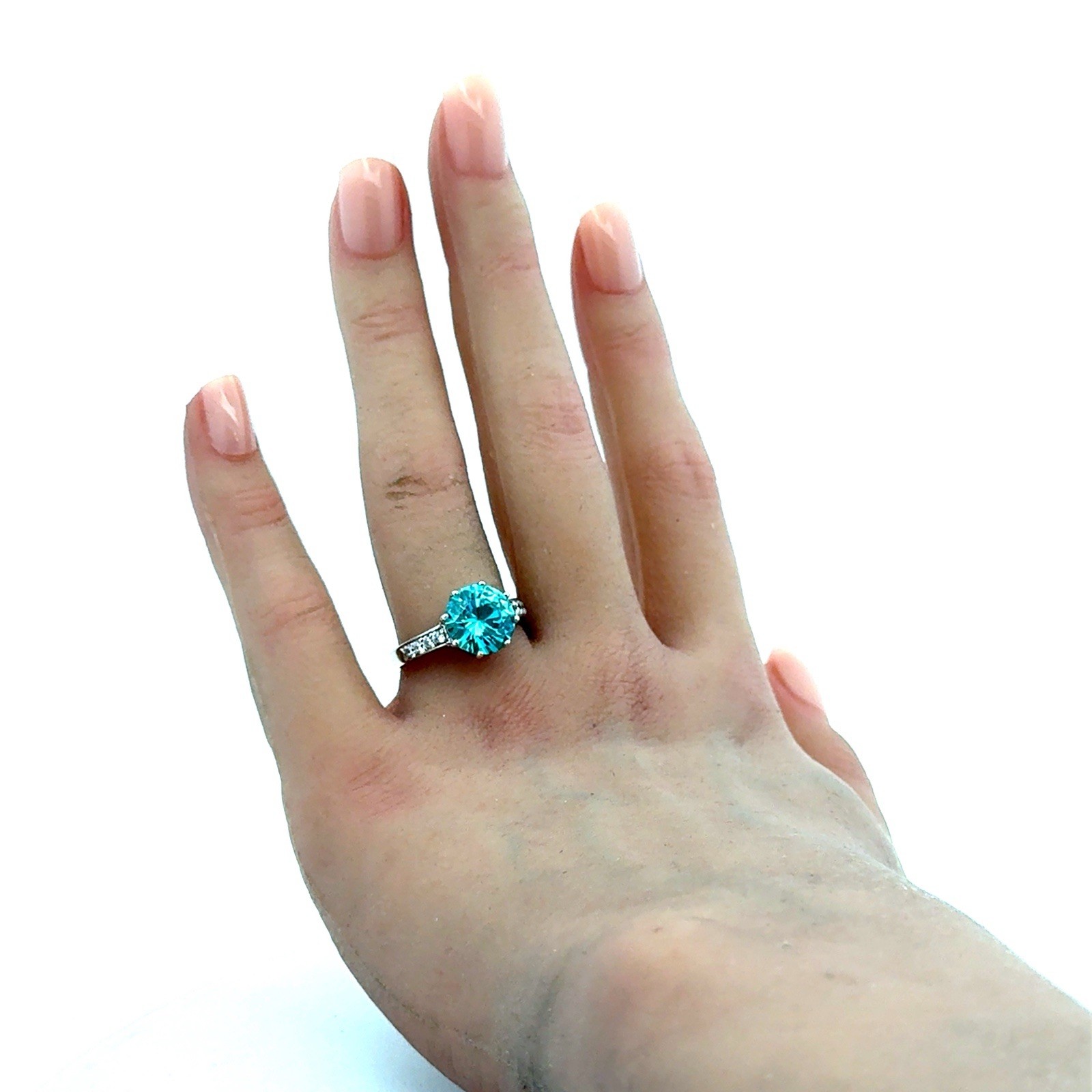 как выглядит Designer 925 Sterling Silver Round Blue Cubic Zirconia w/ Accents Cocktail Ring фото