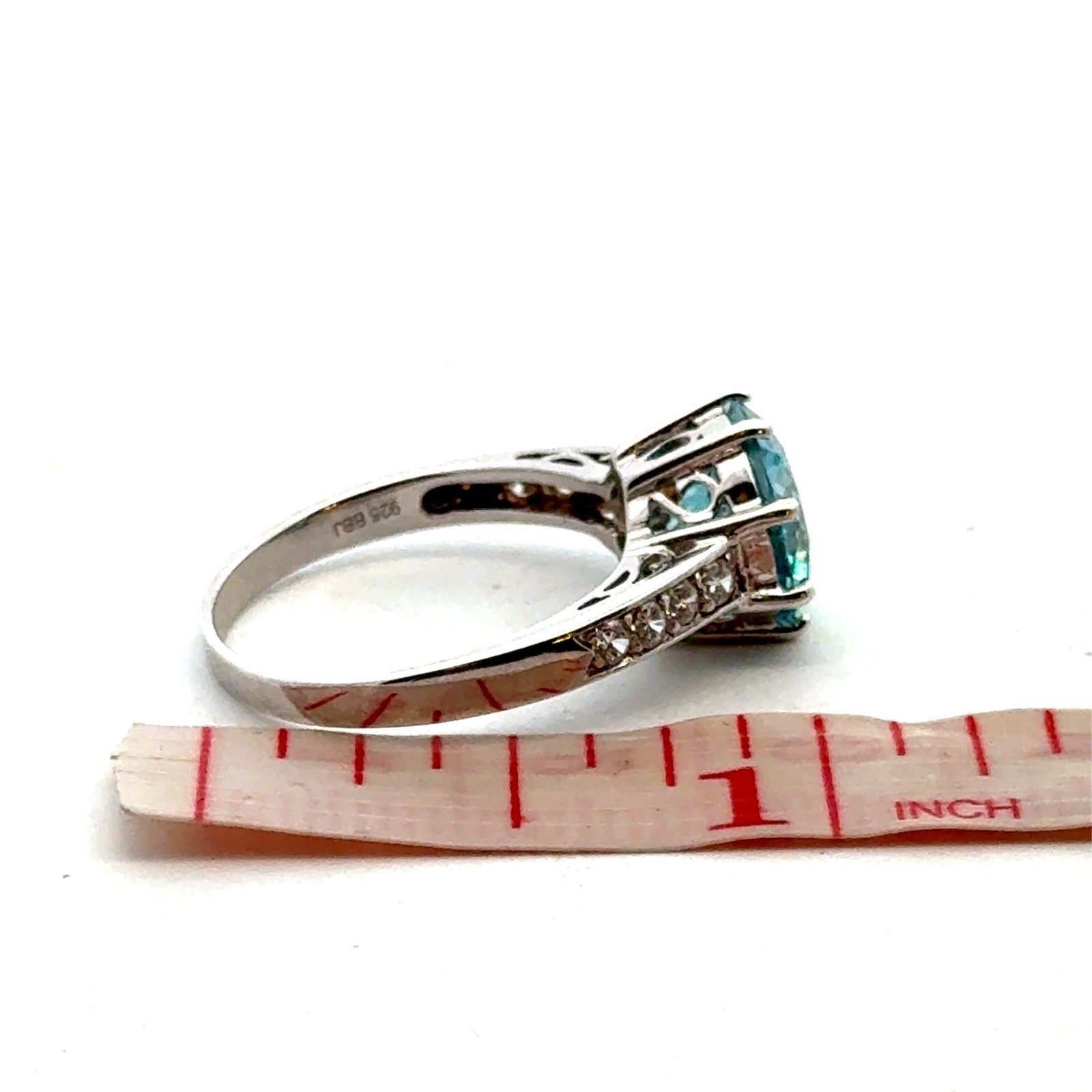 Designer 925 Sterling Silver Round Blue Cubic Zirconia w/ Accents Cocktail Ring