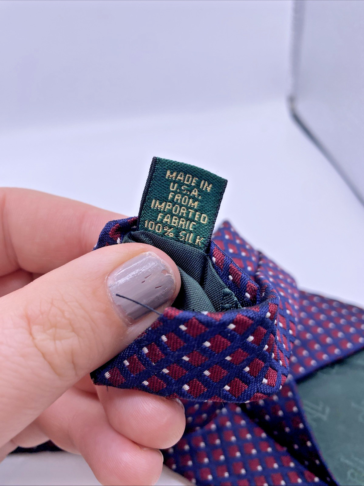 как выглядит Ralph Lauren Tie Navy Blue Burgundy Red Check Textured Silk Preppy Corpcore фото