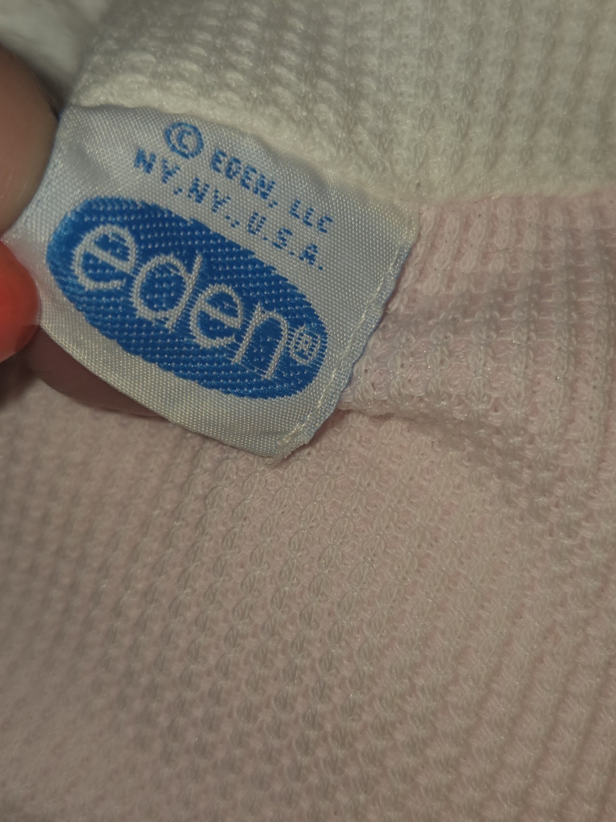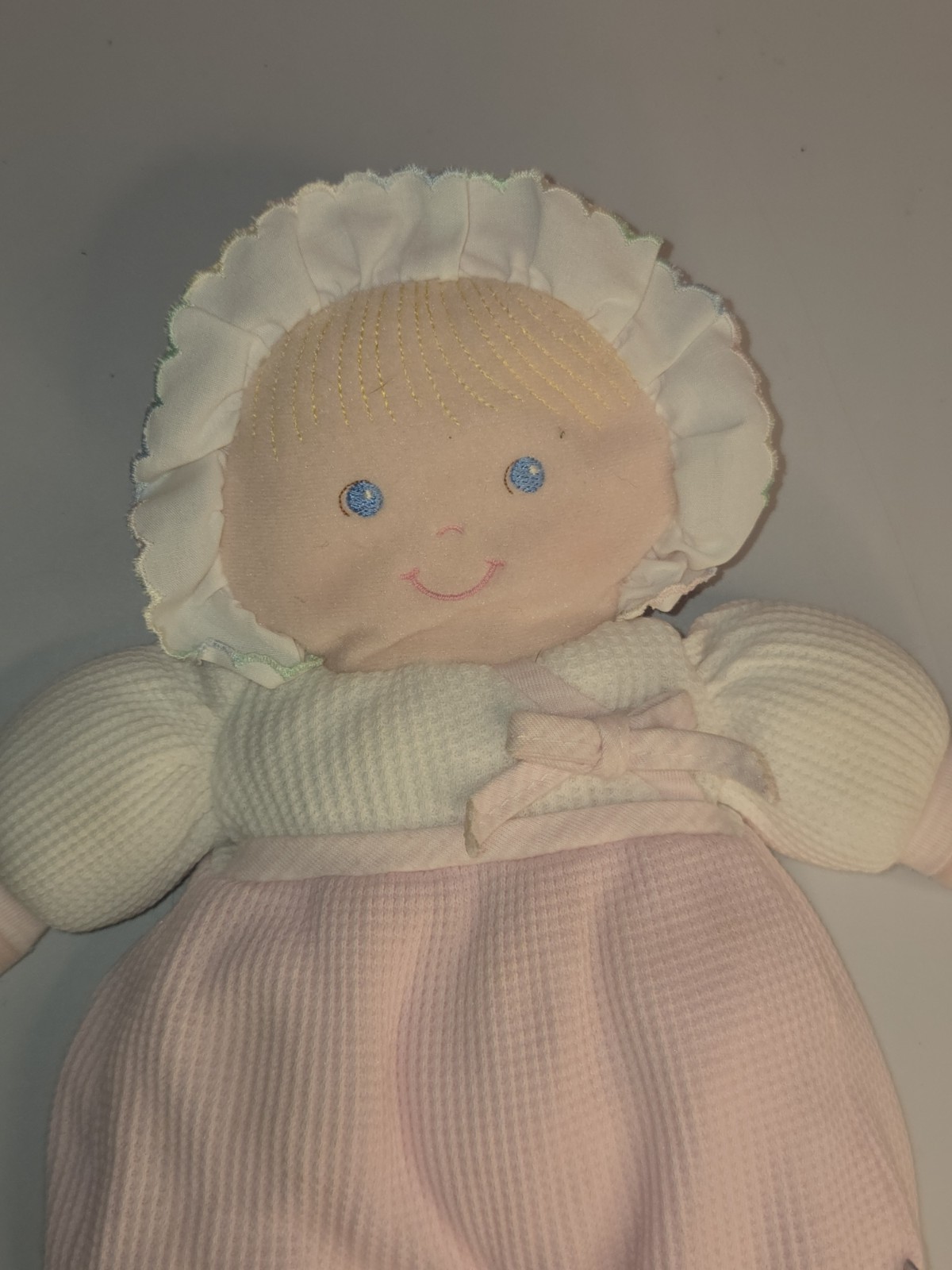 Eden Pink White Baby Girl Blonde Blue Eyes Doll Waffle Thermal 12 Plush Toy