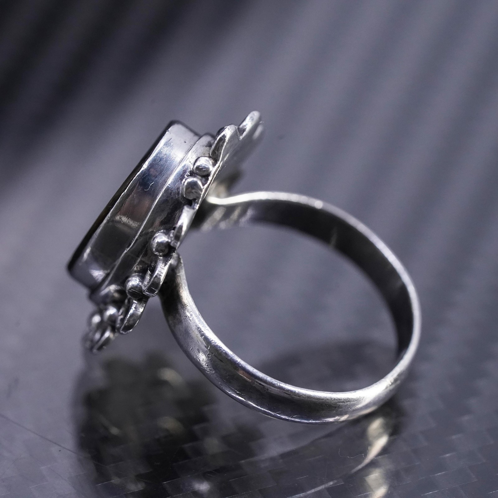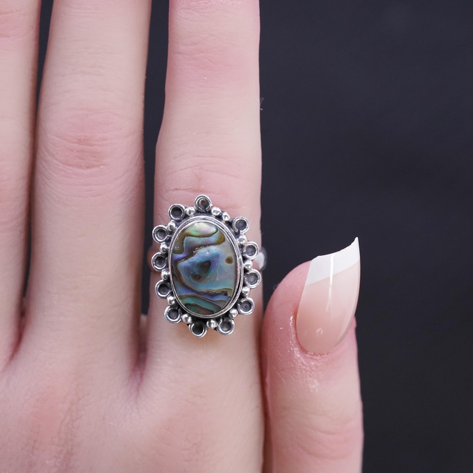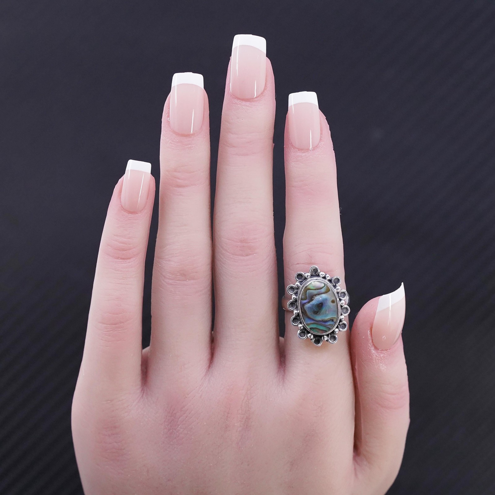 size 7, southwestern Mexican sterling silver 925 band ring with oval abalone
