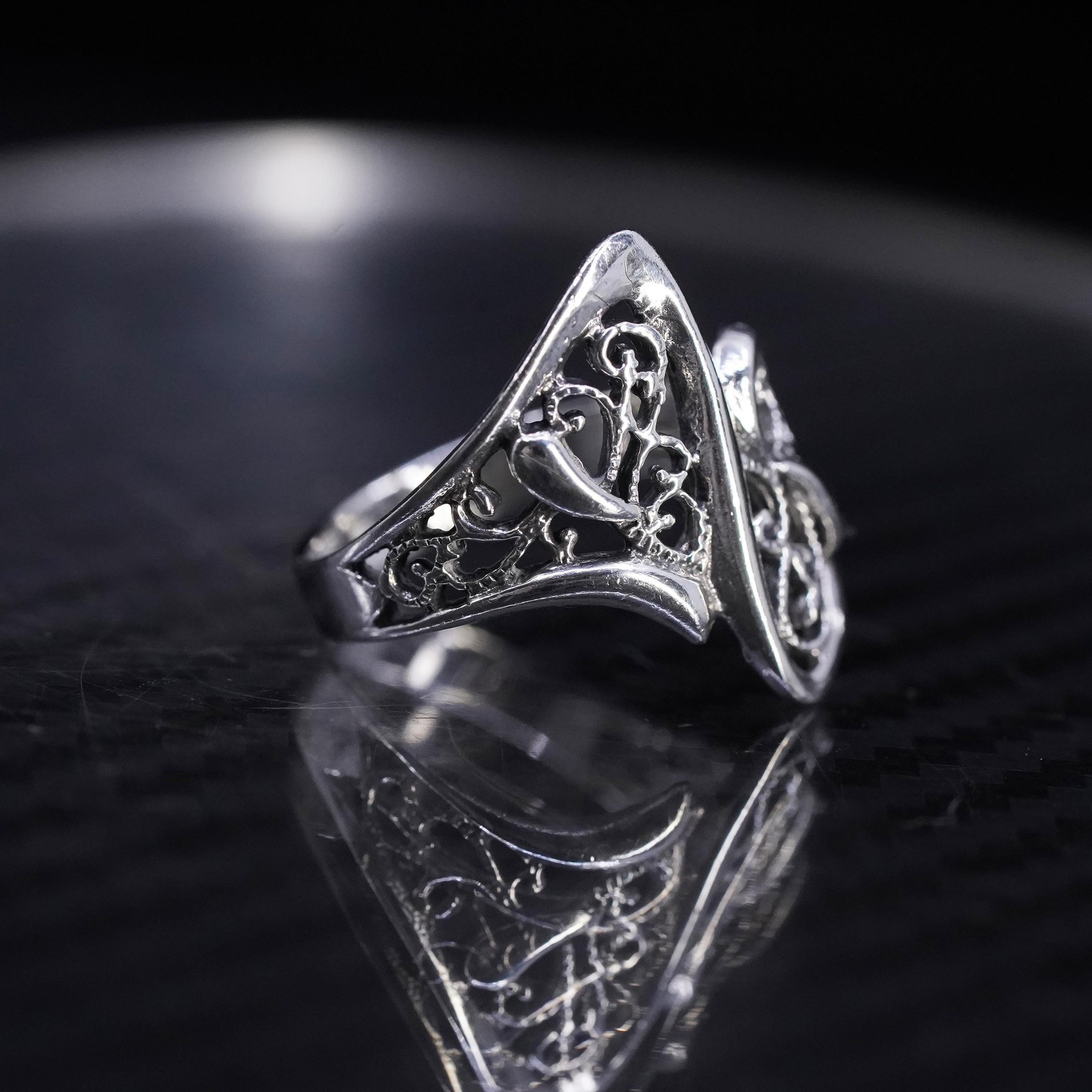 как выглядит size 6, vintage Sterling silver handmade ring, 925 filigree wavy band фото