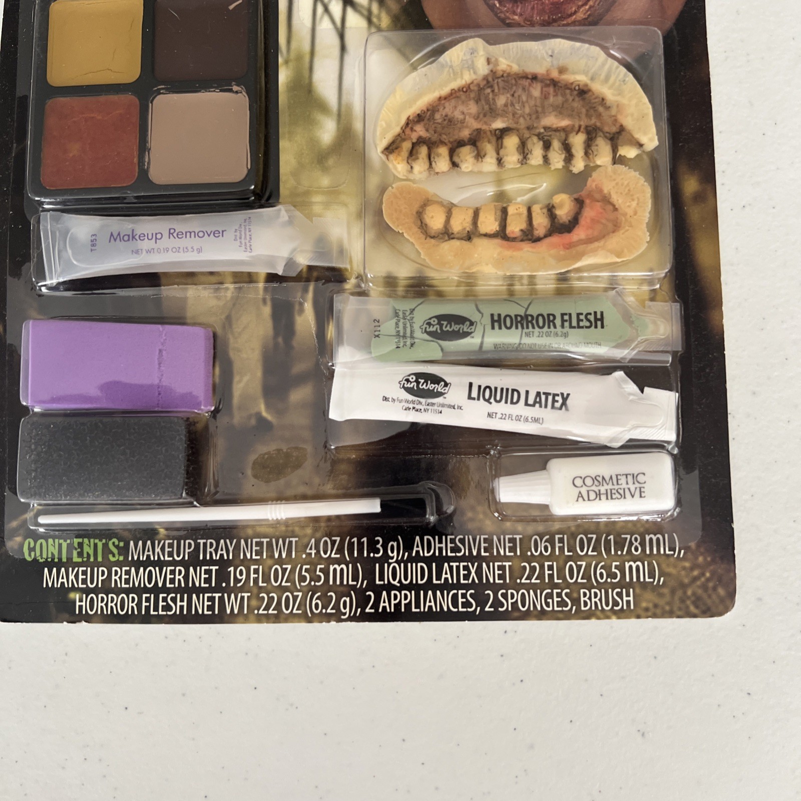 как выглядит ZOMBIE Teeth Costume Makeup KIT Teeth Liquid Latex Horror Flesh Tray Sponges NOS фото