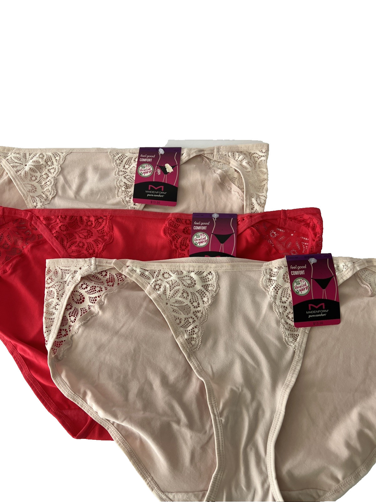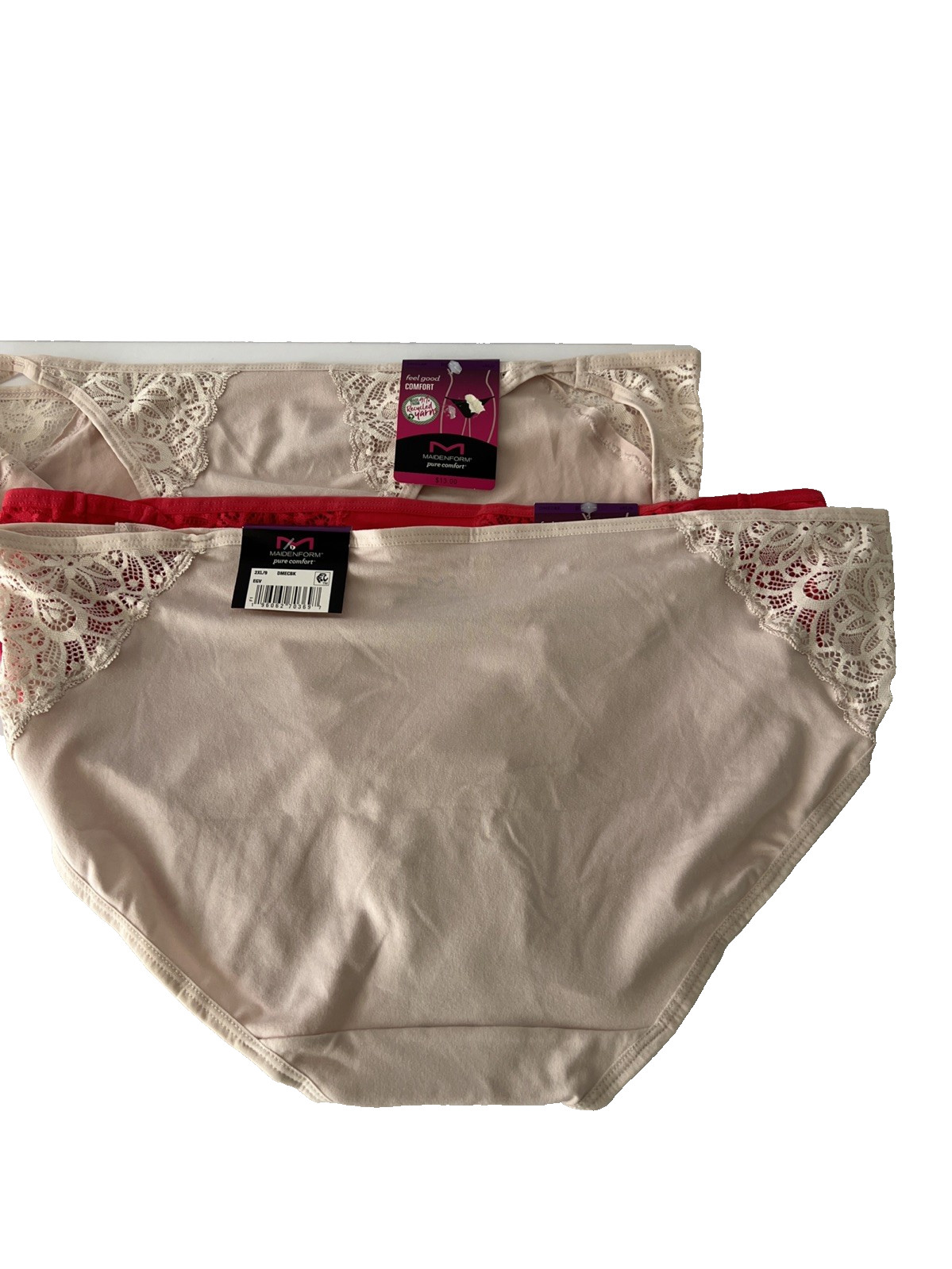 NEW Maidenform 3 Pairs Pure Comfort Bikini Panties 2XL/9 Multi-Color DMECBK