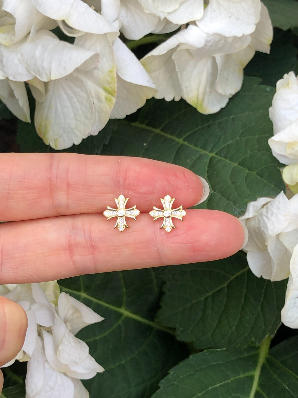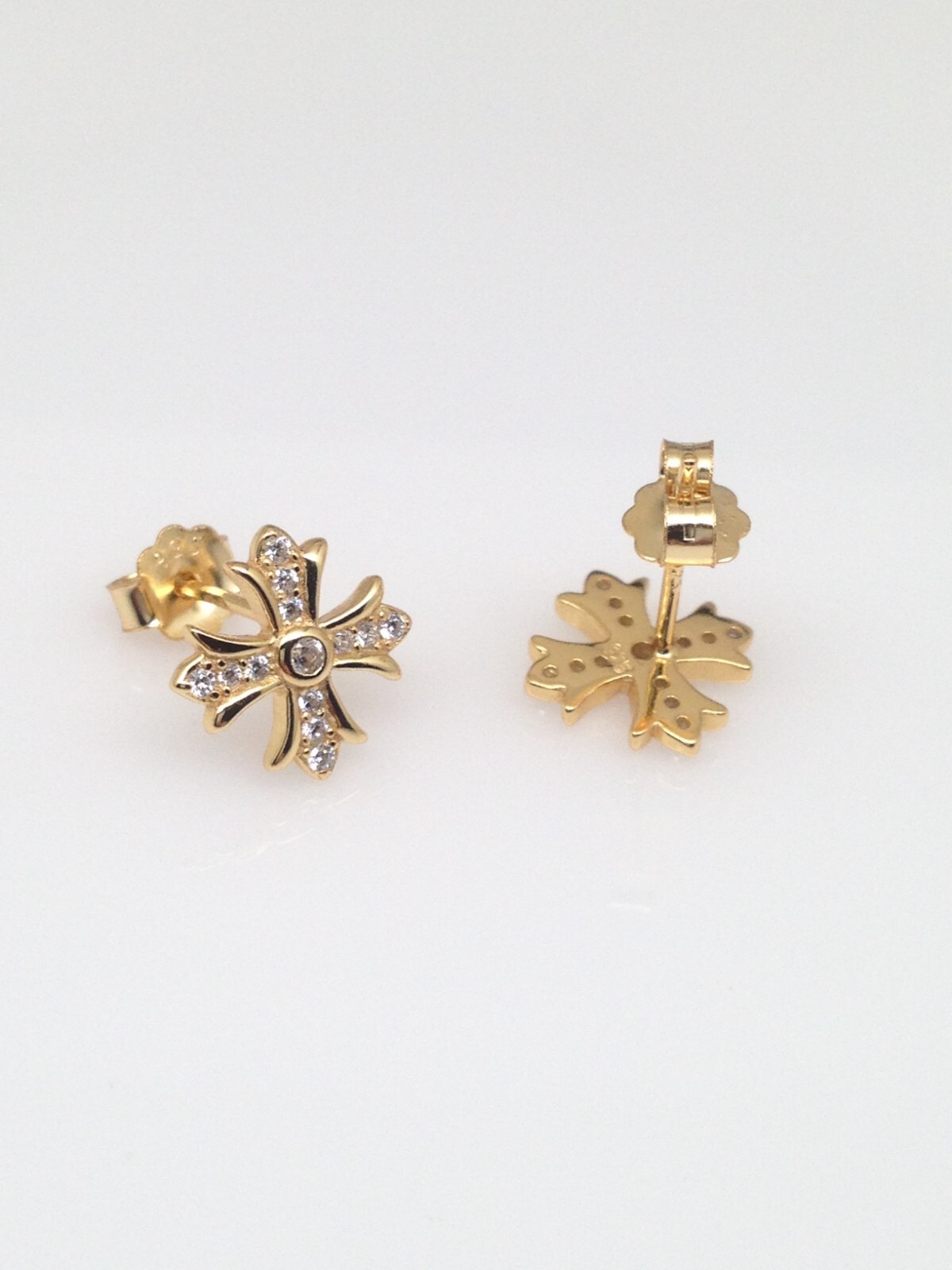 925 Sterling Silver Cz Gold Cross Stud Earrings Men Women Studs 9.5mm Tiny