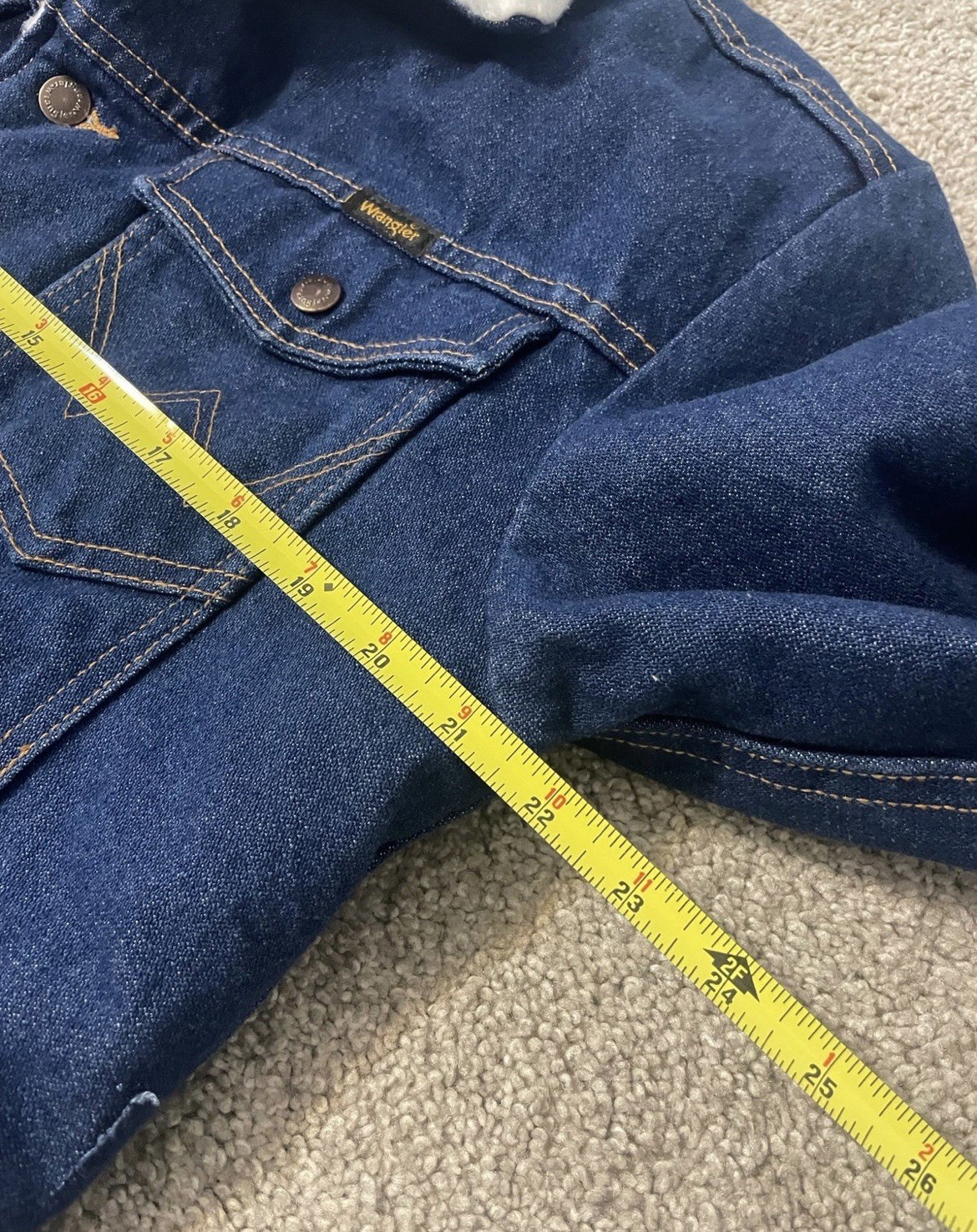 как выглядит Vintage 80s Wrangler Western Blue Denim Sherpa Lined Trucker Jacket Size Small фото